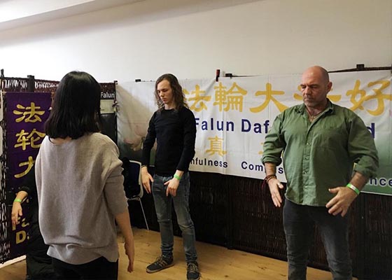 在法轮功的展位前先后来了不少民众学炼功,反响热烈。博览会主办方表示:“你们(法轮功)是唯一的免费为大家做好事。谢谢你们!”