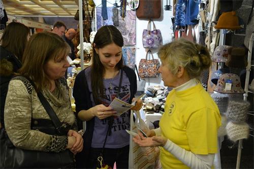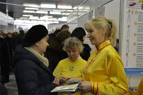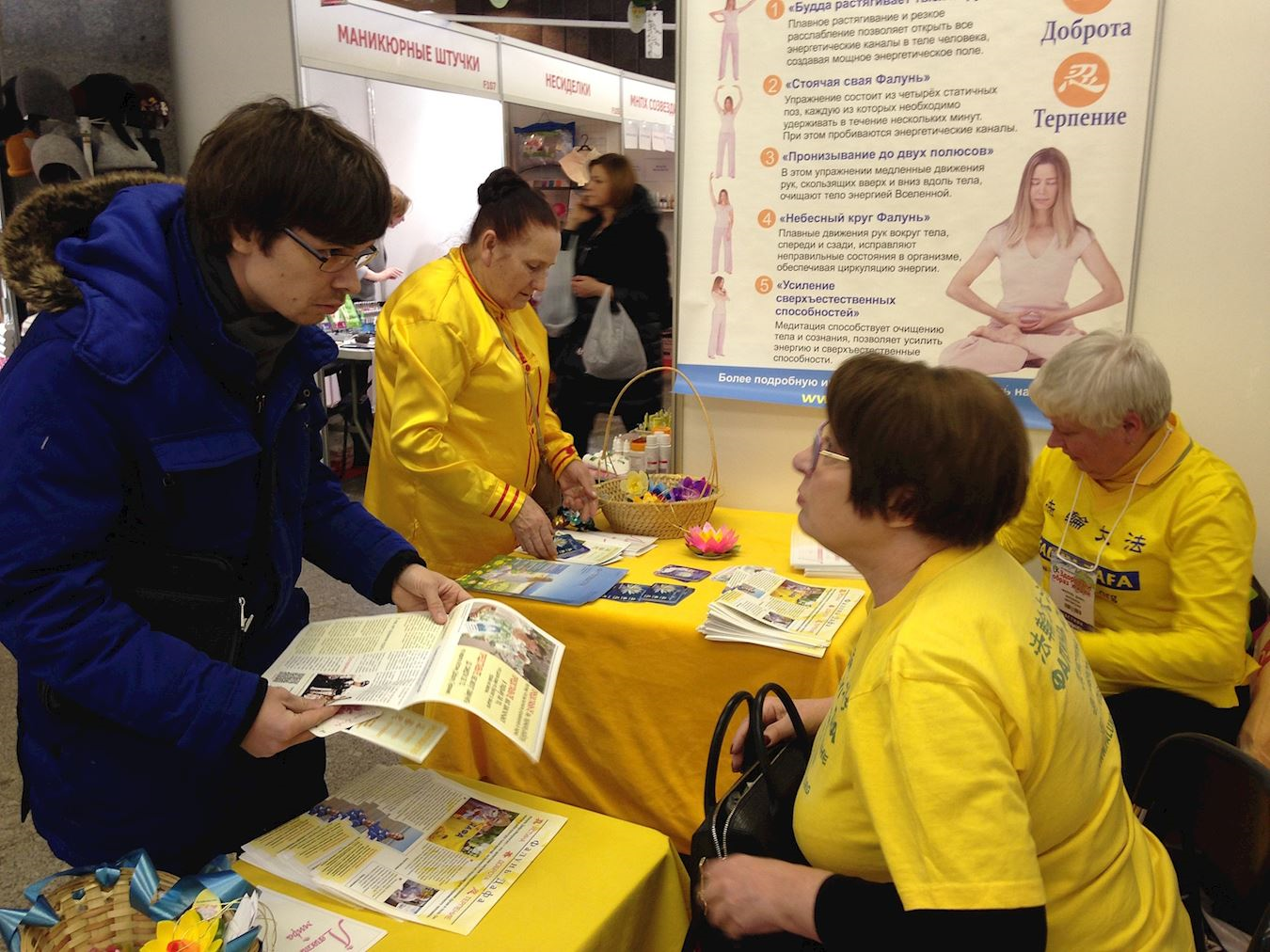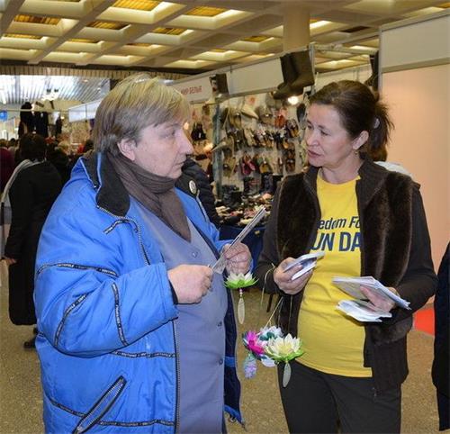一位大学副教授提到,三年前在展会上认识后,得到了一本《法轮功》,阅读后使自己明显改变了对生活的态度,已经开始学炼功法了。还有一位女士谈到,上次在展会上知道了法轮功后,看到“真、善、忍”使她印象深刻,指导着她做事时要做好,不能做错事。“突然我开始清楚的明白自己做的不对的时候,停止自己,这是以前从没有做过的。真、善、忍——是伟大的道理。”