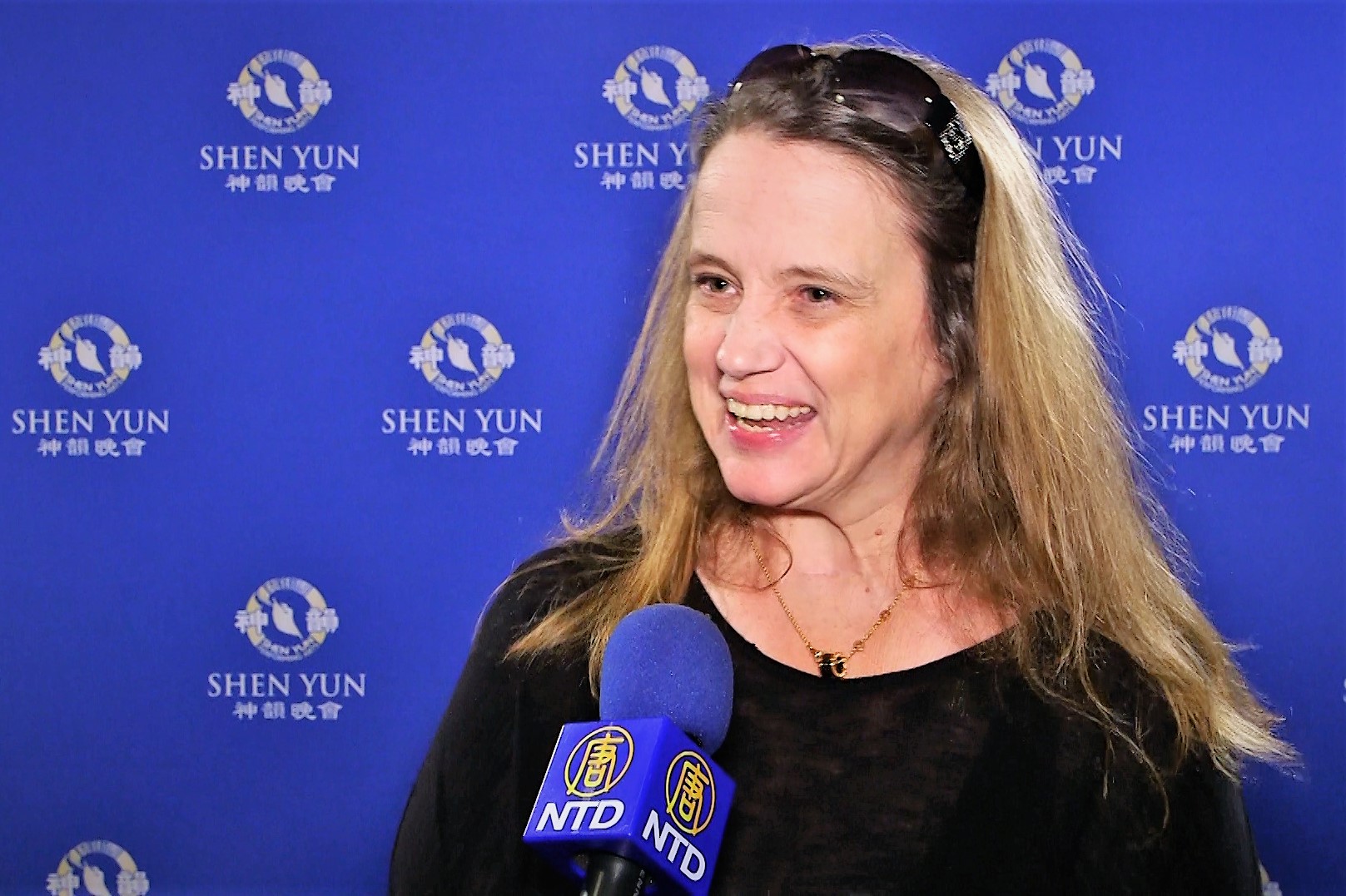 金球奖提名演员舞蹈家Barbara Hancock在亚特兰大观看了四月五日下午,神韵北美艺术团在亚特兰大柯布能源表演艺术中心的演出。她说:“神韵超群绝伦,编舞非常优秀。是一场视觉盛宴!我喜欢观看神韵男演员的舞蹈,因为很丰富,很少有机会看到那么多优秀的男舞蹈演员具有那么高超的舞蹈技巧,并在舞蹈中展示了中国的传统文化。如果您打算今年就看一场演出的话,那你就应该来看神韵!”