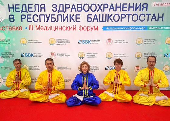 二零一八年四月三日至六日,法轮功学员参加了在俄罗斯乌法市举办的医疗保健展,展会期间向来参观的人们介绍法轮功。