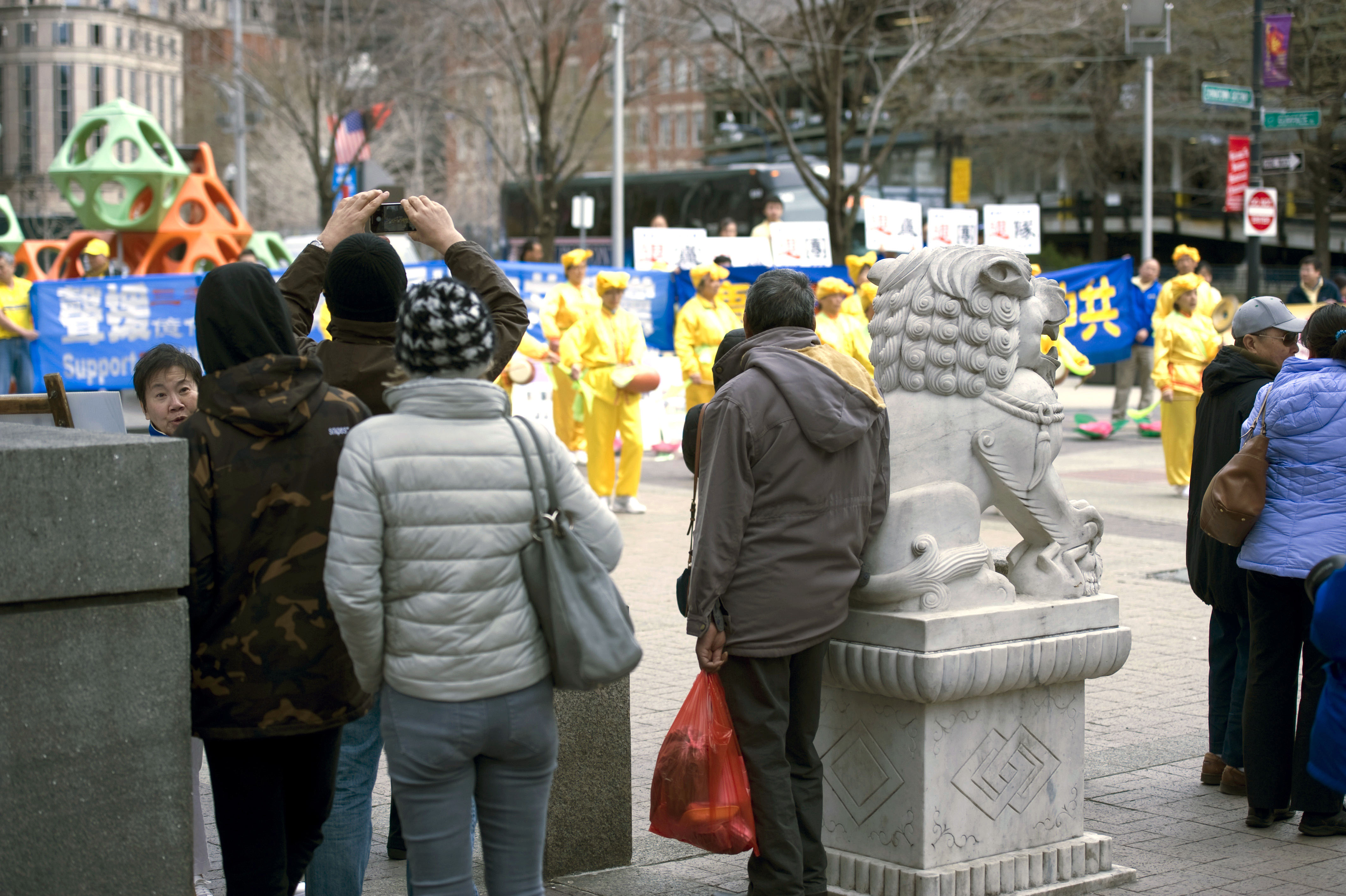 【明慧网二零一八年四月十六日】(明慧记者程德波士顿报道)二零一八年四月十四日,美国波士顿退党服务中心在波士顿中国城拱门处举行集会、海报展及腰鼓表演,声援三亿中国人退出中共邪党、及其团、队组织(简称“三退”),并呼吁更多的中国民众觉醒,加入三退大潮,活动受到在场民众的支持。