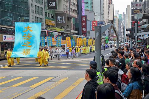 '图2:四月十五日,香港、亚洲多个地区和国家的部份法轮功学员在香港举行纪念“四·二五”十九周年集会游行,场面震撼不少香港市民及大陆游客。'