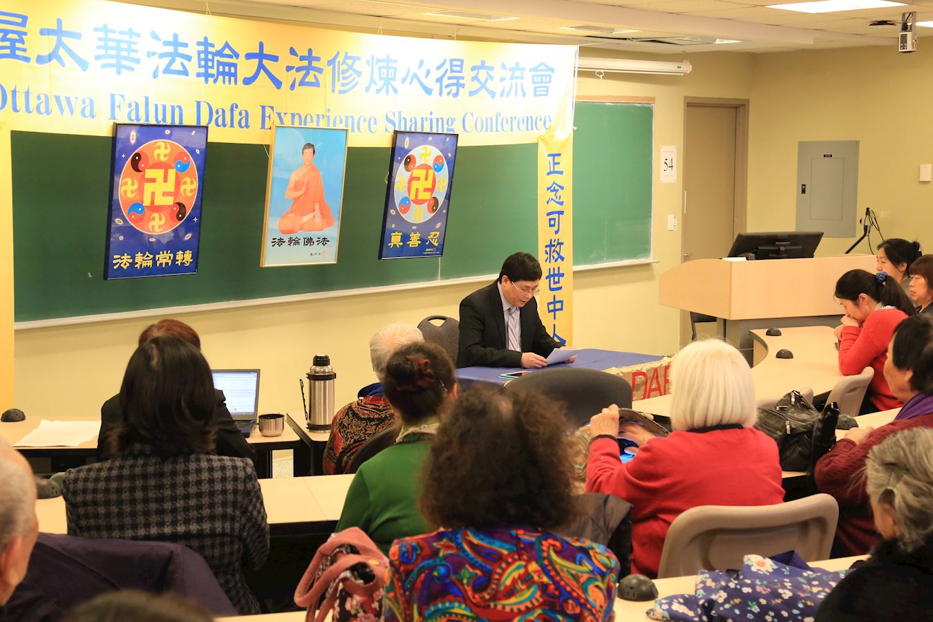 贺女士在法会上交流了自己通过学法,认识到身边的亲人也是需要讲真相和救度的众生。于是,帮助刚从国内来到加拿大的母亲从新回到大法修炼中来,经过一年多的修炼,七十六岁的母亲从多愁善感、面容憔悴的老人,变成精力充沛、开朗乐观的真正修炼人。通过平和、善意的讲真相,她的女儿从一个法轮大法的支持者,到决定开始读法;她的丈夫也改掉了爱发脾气的恶习,决心做一个理智、善良的好人。