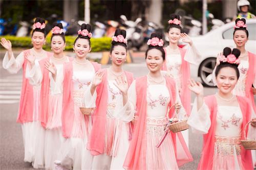 游行队伍行经大马路的时候,对面的车流看到游行的队伍,有仙女向对面车子招手,许多司机及乘客也挥手回应并且摇下车窗比赞的姿势。
