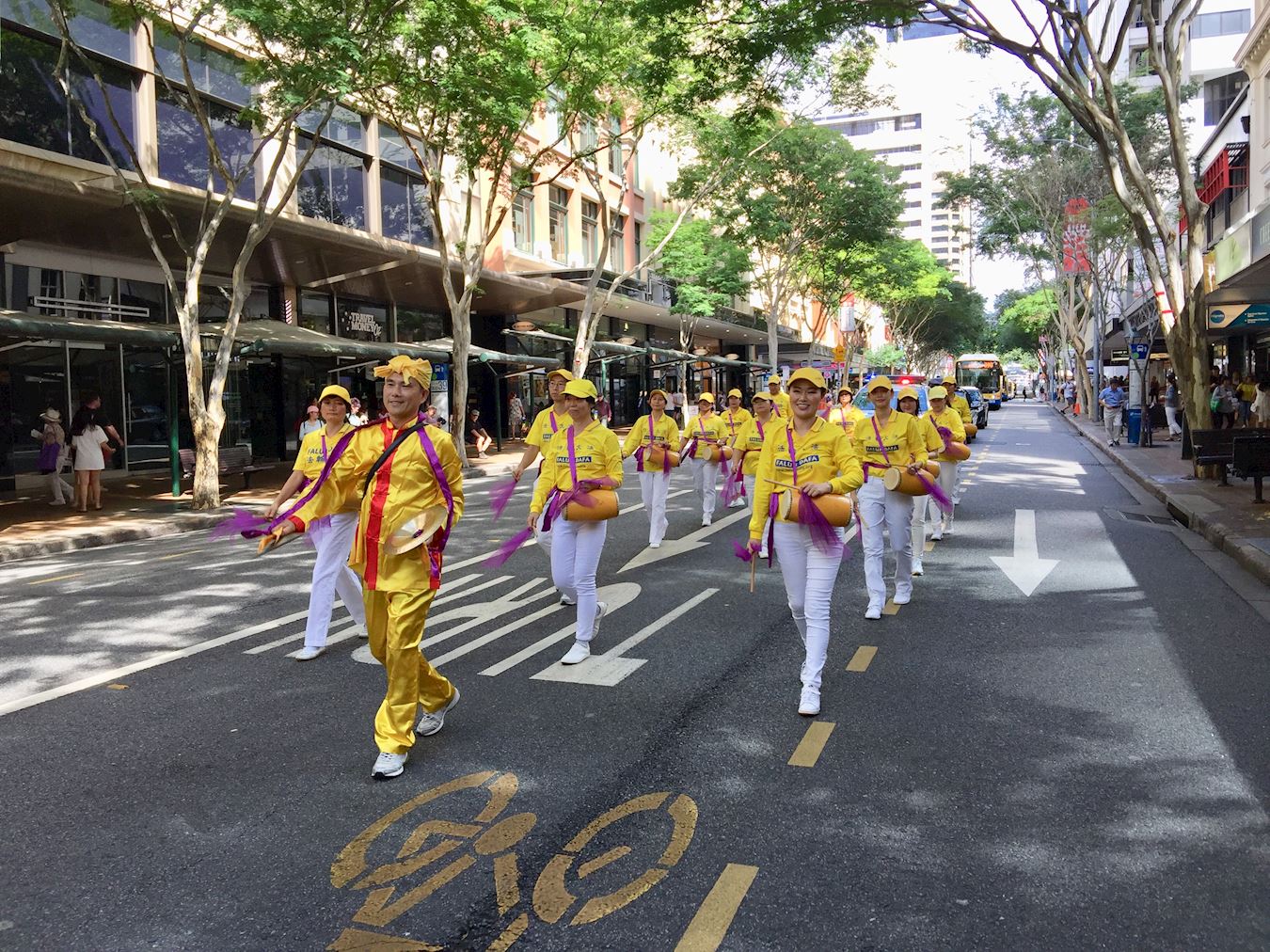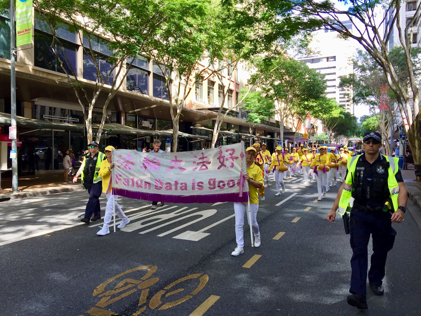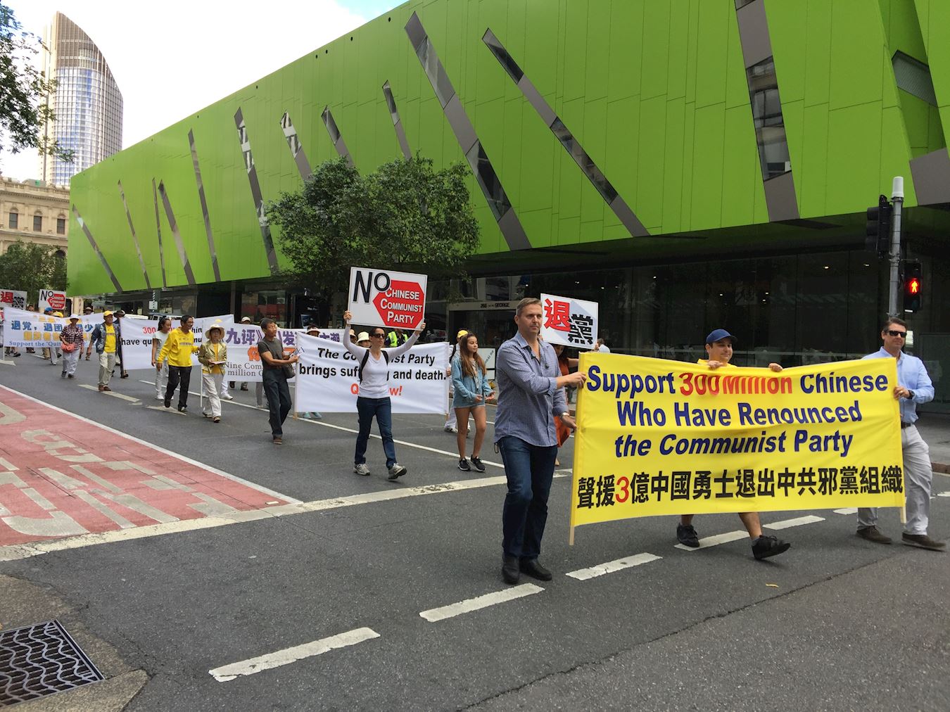 上午十一时,在警方的协助下,游行队伍从布里斯本广场出发,途经市中心的几条主要街道,直至中国城。学员手持横幅、标语,声援退出中共邪党组织的三亿民众,并庆贺他们为自己选择了美好的未来。
