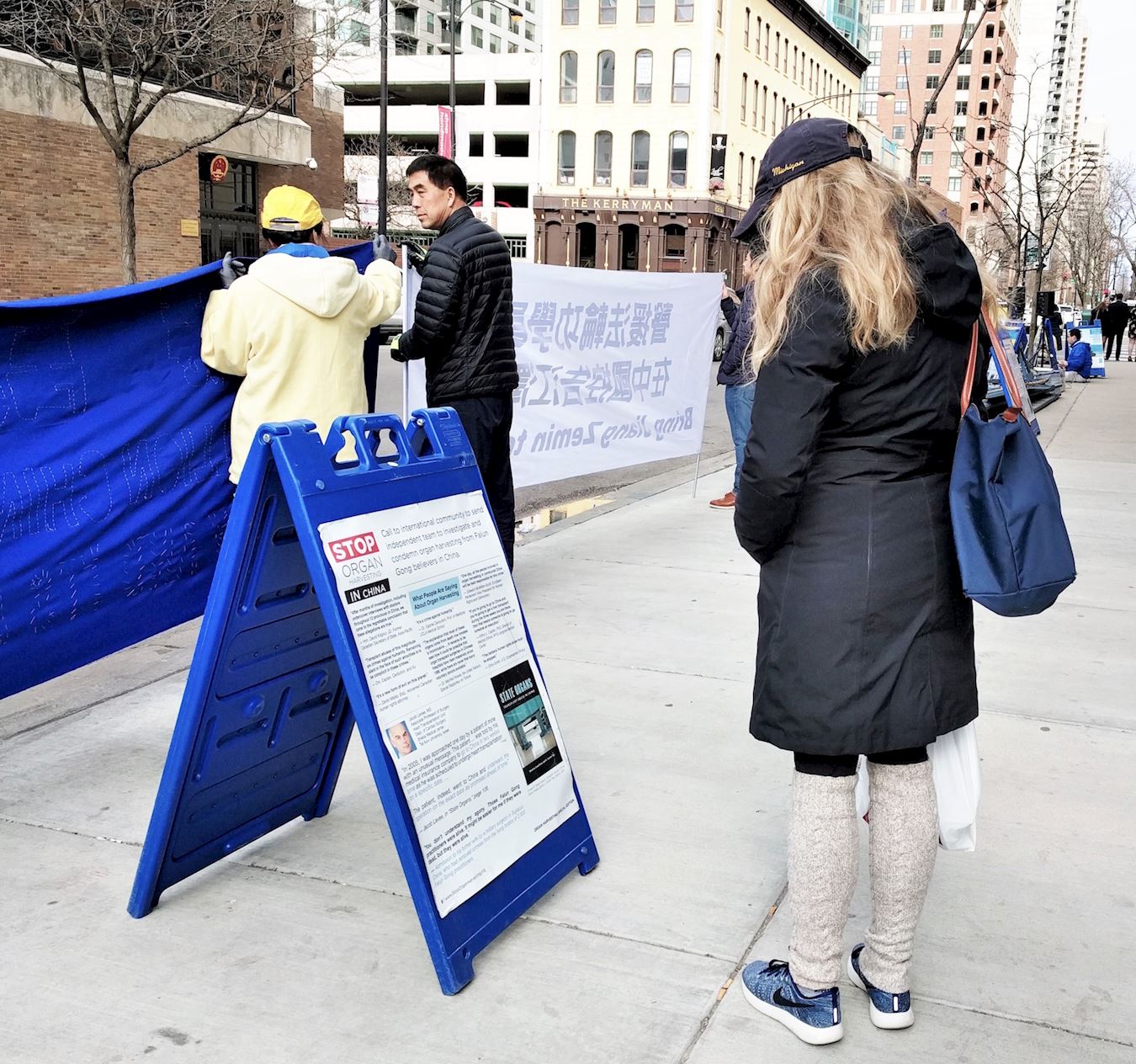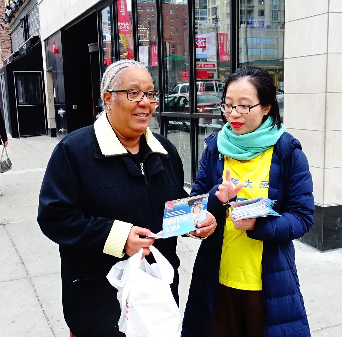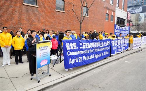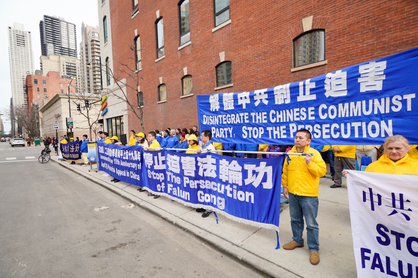 从一九九九年中共开始迫害法轮功以来,每年的四月二十五日,芝加哥学员都会在中领馆前举办纪念活动,呼吁人们关注发生在中国长达十九年的迫害。二零一八年四月二十一日下午,法轮功学员们打出“纪念四二五法轮功学员和平上访十九周年”、“解体中共制止迫害”等横幅,也有部份学员在路边的人行道上静静地炼功,派发真相资料。两位学员亲身经历过“四·二五”上访,并回忆了当时的情形。