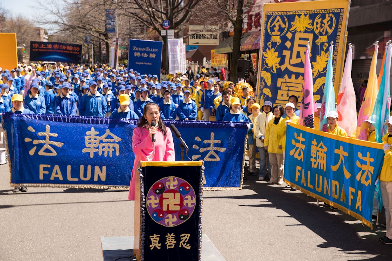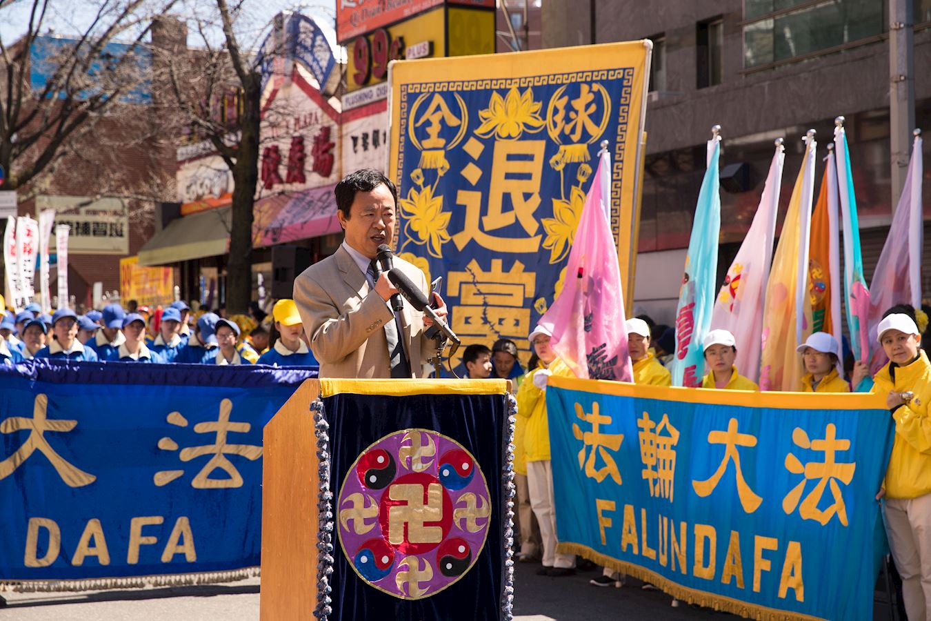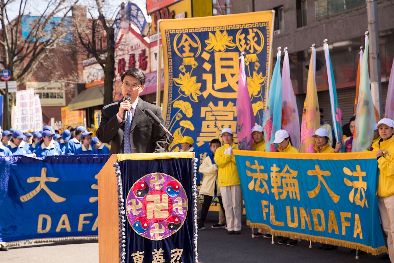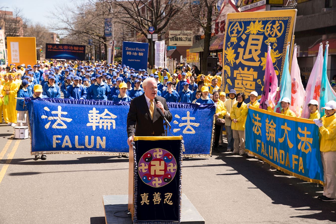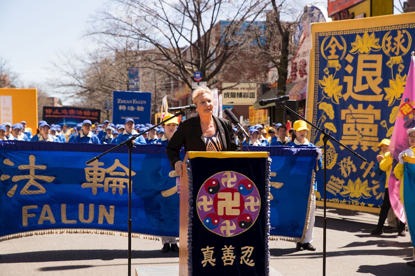 多年来一直支持法轮功学员的社区领袖玛莎(Martha Flores-Vazquez)女士在集会上说:“法轮功是反暴力的,中国人需要听到这些社区中的好人的心声。不管在纽约、法拉盛或中国都不能忍受对法轮功迫害。从当天市警所提供的庞大警力,可看出对法轮功的保护,不象世界某些个地方在迫害。”