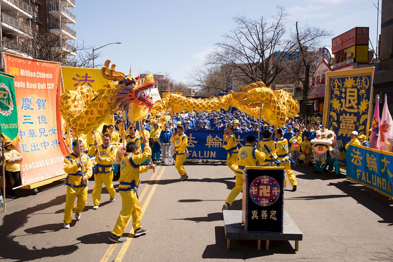 ![]() 图1~4:二零一八年四月二十二日,逾千名纽约法轮功学员在纽约最热闹的华人社区——法拉盛集会,庆祝三亿中国人三退。 |