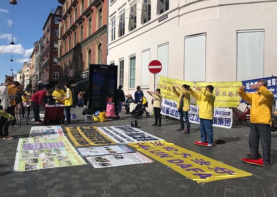 四月二十一日,丹麦法轮功学员在哥本哈根市中心库尔特沃广场(Kultorvet )举办活动,纪念“四·二五”十九周年。