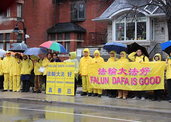 四月二十五日,多伦多法轮功学员在中领馆前举行一系列活动,纪念“四二五”法轮功学员和平上访。