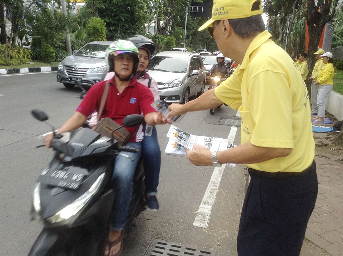 今年在泗水市(Surabaya)也举办了纪念四二五和平上访的活动,数十位法轮功学员聚集在中领事馆前,挂上真相横幅,学员向路人分发法轮功的真相资料,包括在路过的司机、值班的保安们等人。