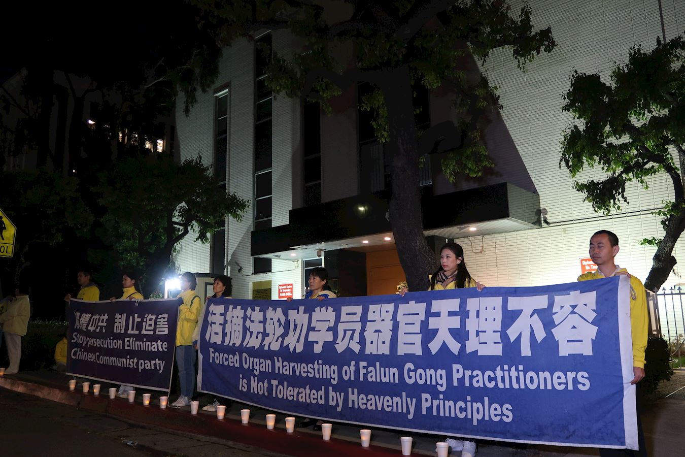 洛杉矶学员中领馆前烛光纪念四二五(图)