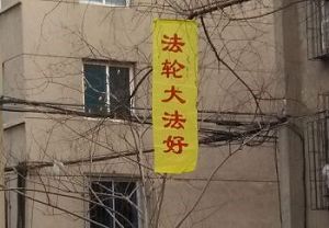 到了地方之后,同修拿出一个大袋子,里面装的都是真相条幅和挂钩,然后告诉我怎么弄好之后,再递给她。因是第一次和她配合,我默默的记下同修教我的程序,紧跟在她的后面,看着同修选好了位置,我迅速的将准备好的条幅递给她,就看同修拿出事先准备好的能伸缩的鱼竿,抬手、伸腕、举杆,然后再拿着手电筒一照,一个条幅就稳稳当当的挂上去了。
