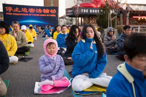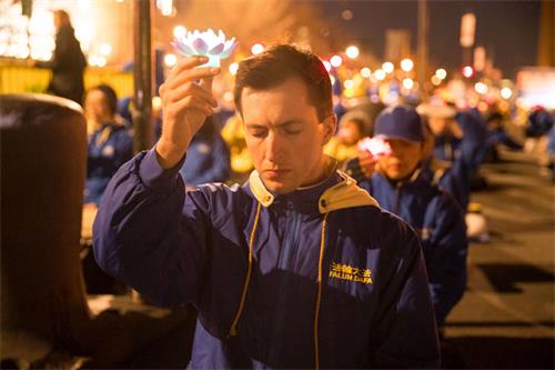 一位来河边运动的老人,看到烛光守夜、听闻法轮功学员在中国受迫害的事实后,眉头紧锁,眼泛泪光,与学员握手并恳切地说,“祝你们好运。”