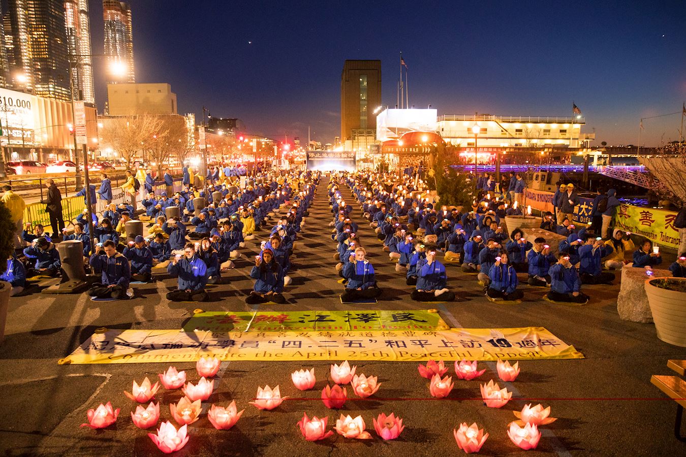 ![]() 图8~11:纪念“四二五”十九周年,千名纽约法轮功学员举办烛光守夜。 |