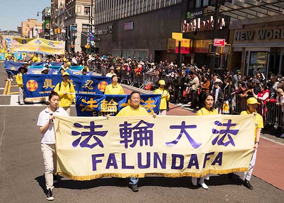 四月二十二日,为纪念“四·二五”十九周年,法轮功学员在法拉盛举行游行集会,吸引许多民众观看,其中有四百多人经法轮功学员讲清真相后当场三退。