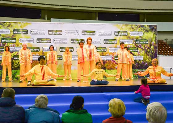 四月十九日至二十二日,在圣彼得堡最大的体育展览中心举办了夏季展销会,当地法轮功学员应邀参加。