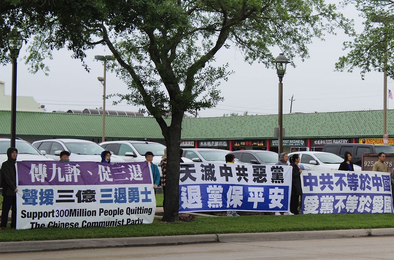 ![]() 图:休士顿学员声援三亿人三退,传递退党保平安真相 |