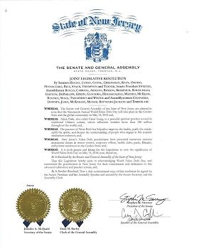 新泽西州参众议院联合决议恭贺法轮大法日(图)