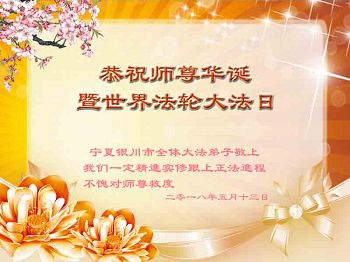 - 宁夏大法弟子恭贺世界法轮大法日暨师尊华诞(21条)- 宁夏吴忠市全体大法弟子恭祝慈悲伟大的师尊生日快乐!恭祝世界法轮大法日!