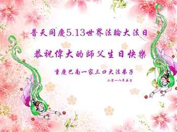 - 重庆大法弟子恭贺世界法轮大法日暨师尊华诞(22条)- 请师父放心,弟子们一定按师父安排的路走到底,走好最后的每一步,我们一定互相配合,修好自己,做好三件事多救人,兑现神圣的誓约。