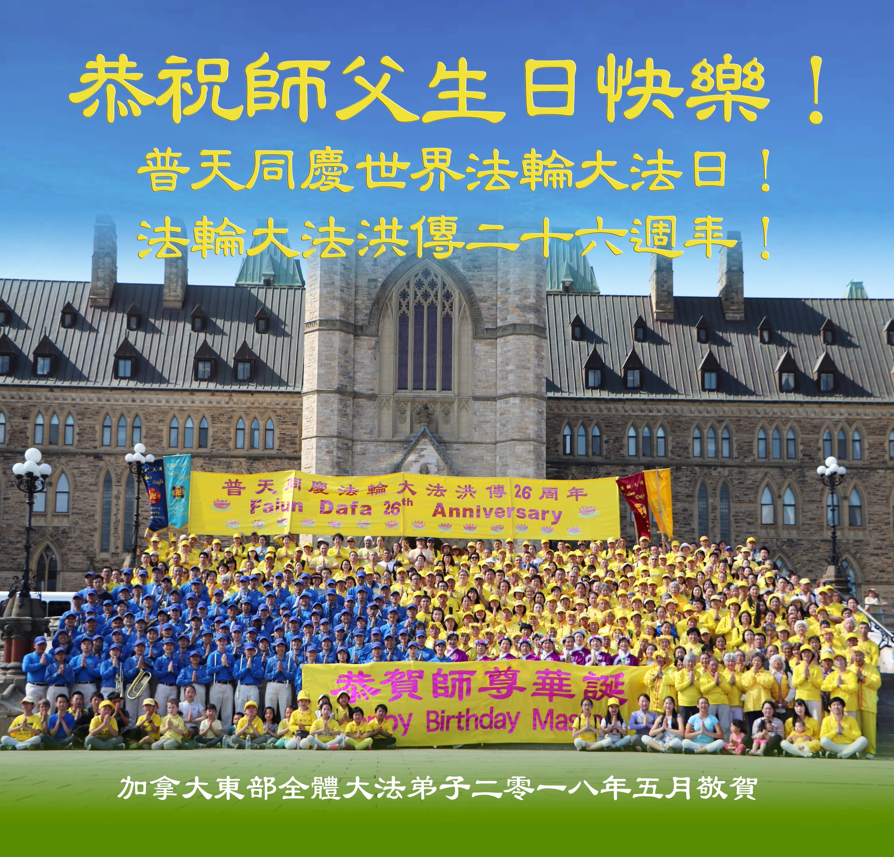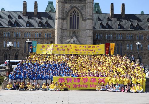 ![]() 图1~7:五月九日来自加拿大东部渥太华、多伦多、蒙特利尔等城市的部分法轮功学员在加拿大国会山前庆祝法轮大法日。 |