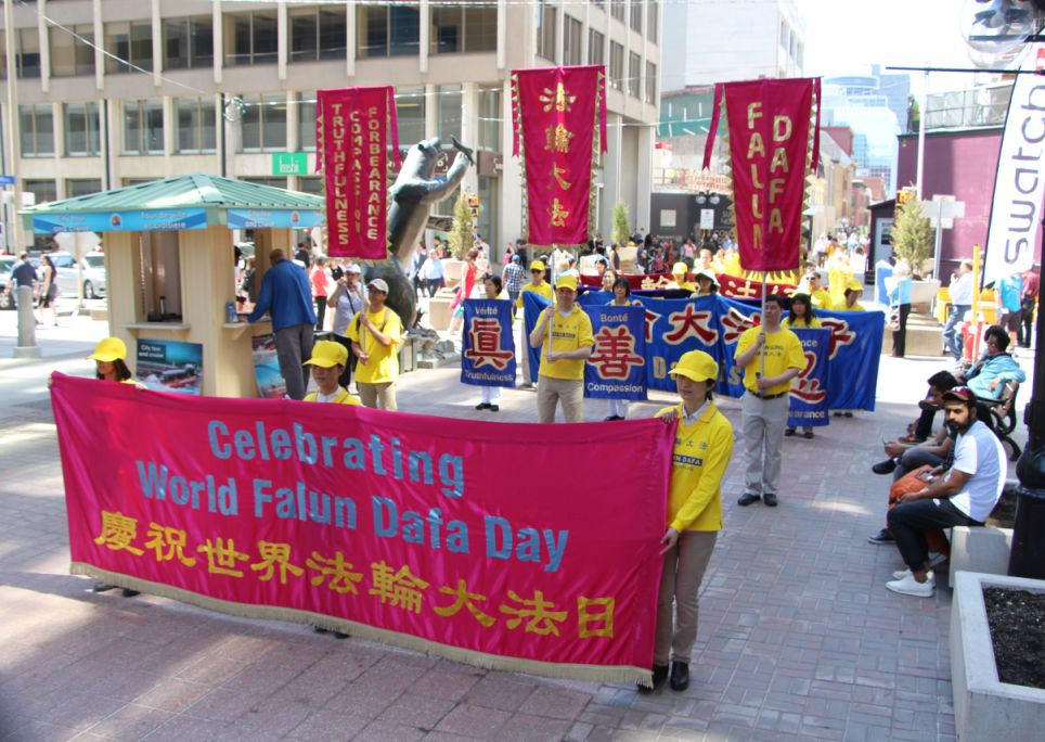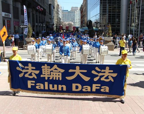 今年七十八岁的彭先生和太太张女士,来自北京,在加拿大已居住了十年。他们一直跟着天国乐团的游行队伍走,张女士兴奋地说:“在电视上看过好多次了,这是第一次亲眼看到,真的很震撼!”知道是庆祝法轮大法日时,彭先生说:“加拿大政府一直非常支持法轮功,总理哈勃在位时就定了法轮大法日。我也祝贺法轮大法日。”