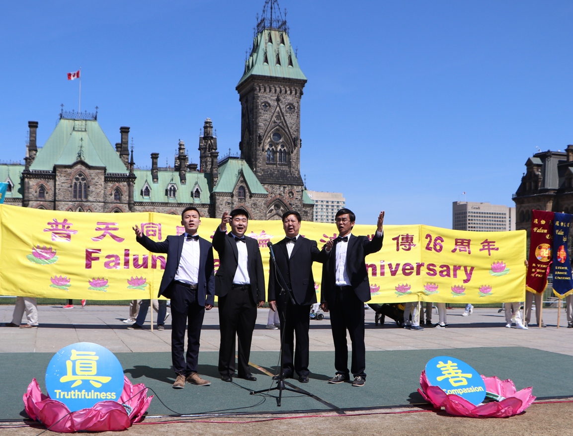 ![]() 图10:法轮功学员组成的男声小组唱《法轮圣王》 |