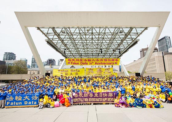 在法轮大法弘传于世二十六周年之际,加拿大维多利亚、多伦多、汉密尔顿、卡尔加里、温尼泊、温哥华、哈利法克斯等地大法弟子恭祝慈悲伟大的师尊生日快乐!同庆世界法轮大法日!