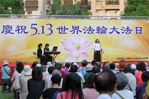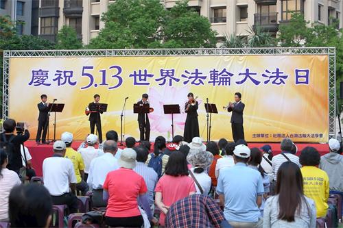 二零一八年是法轮大法开传二十六周年、第十九届“世界法轮大法日”暨法轮大法创始人李洪志先生六十七华诞。五月十二日,台湾桃竹苗法轮功学员在新竹关新公园举办庆祝大会,他们以集体炼功、真相图片展、义务教功以及舞蹈表演、器乐演奏及优美的歌声,学员修炼体会的分享,来表达他们的喜悦与感恩之情。
