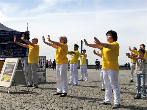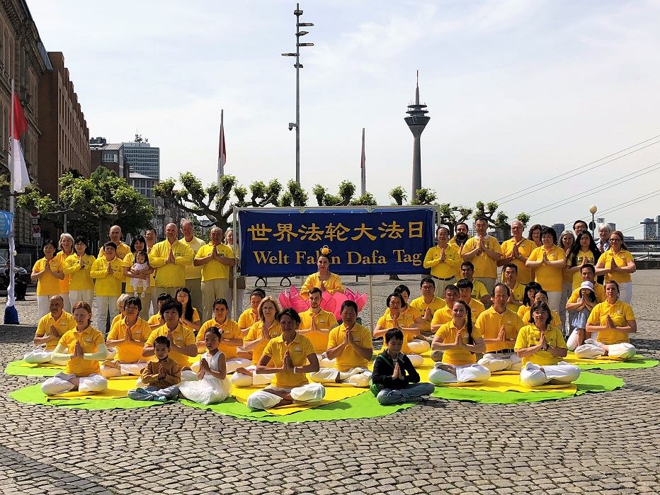 【明慧网二零一八年五月十三日】二零一八年五月十二日星期六,来自杜塞尔多夫及周边地区的部份法轮功学员聚集在杜塞尔多夫市中心的城堡广场(Burgplatz)上,庆祝世界世界法轮大法日。