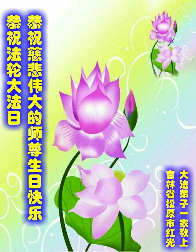 值此普天同庆的日子,弟子叩拜师尊!祝师尊生日快乐!我们一定按师父的要求,做好三件事,勇猛精進,修炼如初。紧随师行,多多救人。完成我们的神圣誓约,以报师恩。