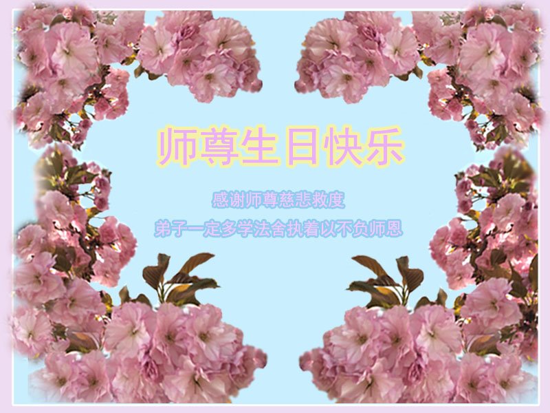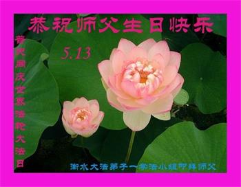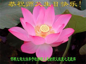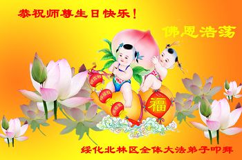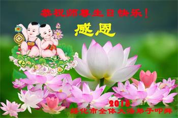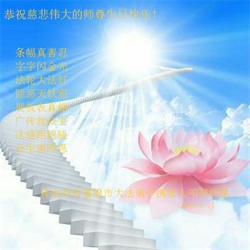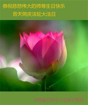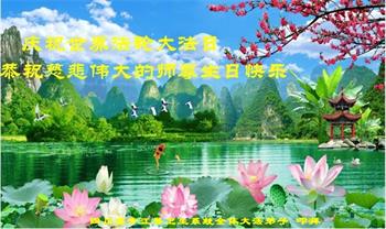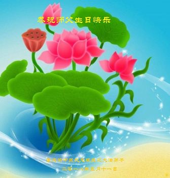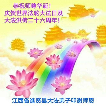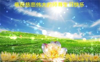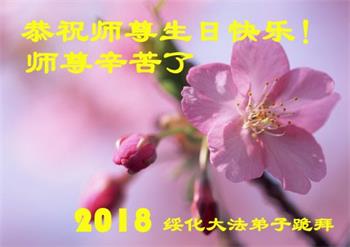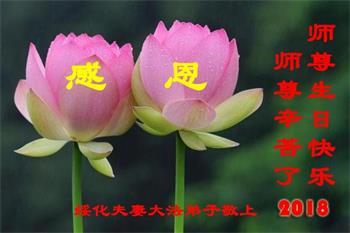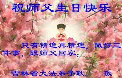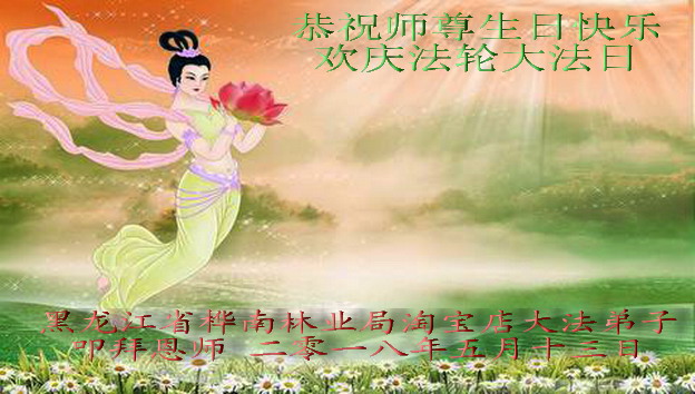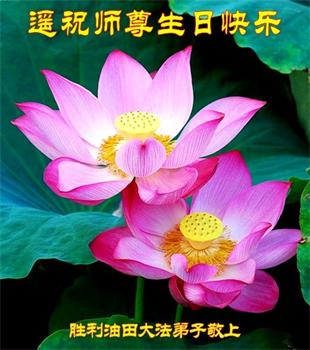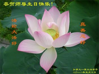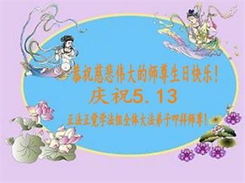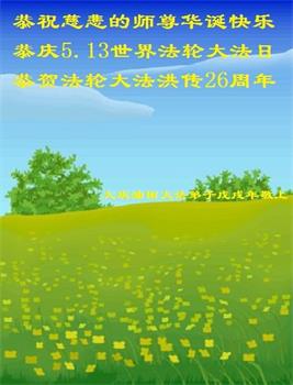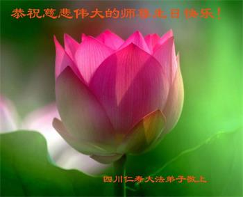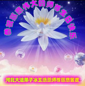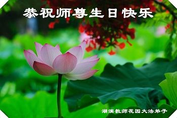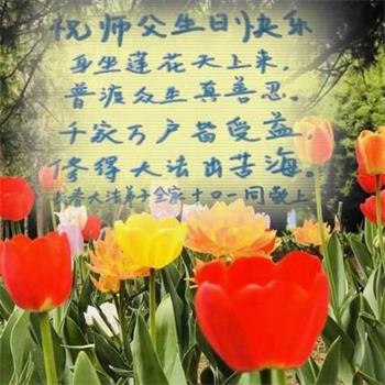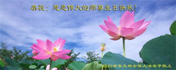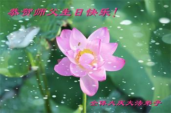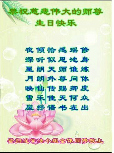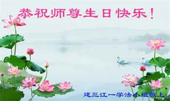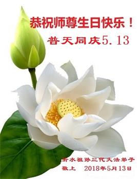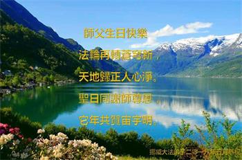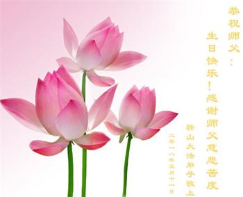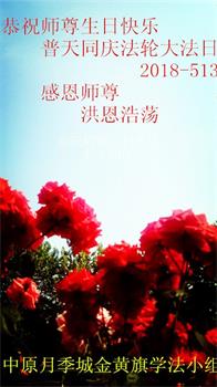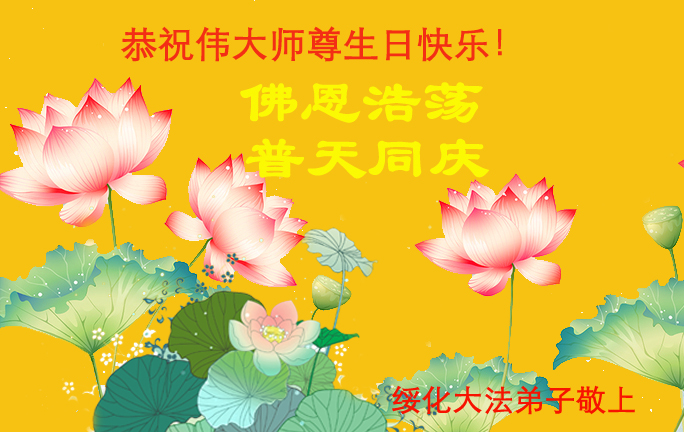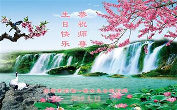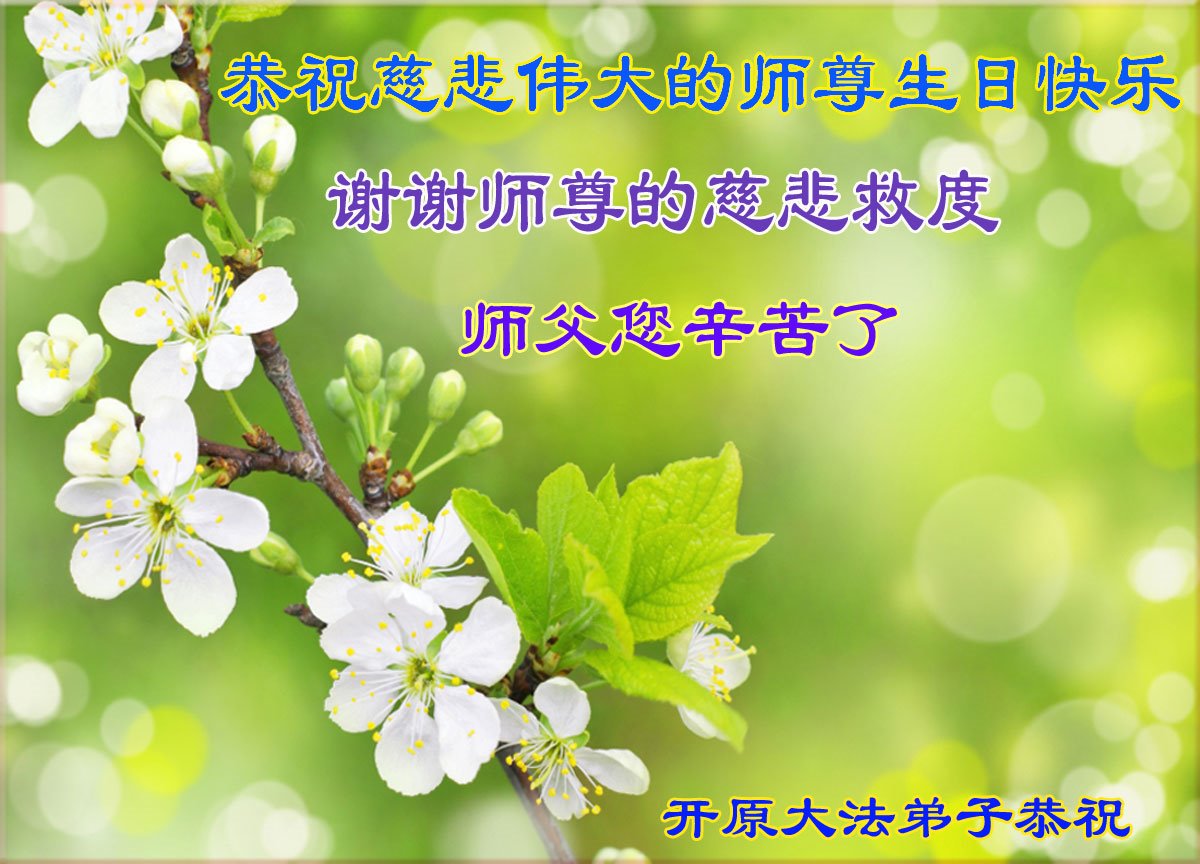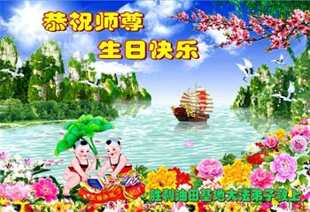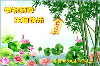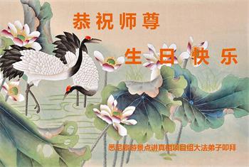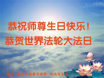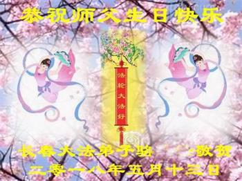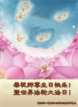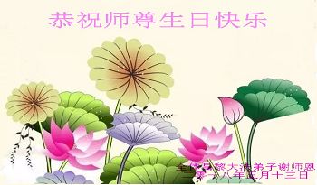 我们深谢恩师慈悲苦度!衷心恭祝师尊华诞快乐!在正法最后不多的时间里,我们一定会认真学好法,修好自己,从根本上改变常人的观念,正念正行,抓紧时间救度更多众生,完成正法时期大法弟子的历史使命,圆满跟随师尊回归家园。