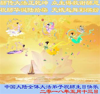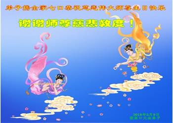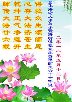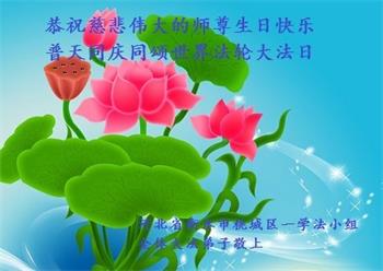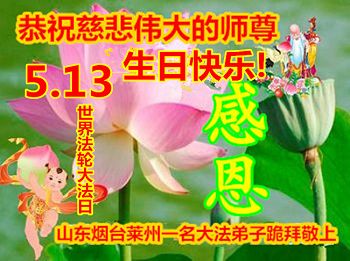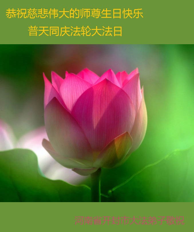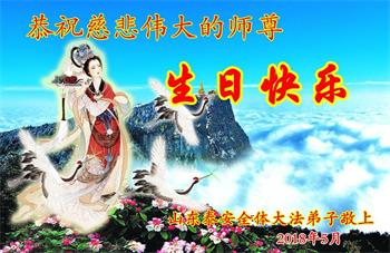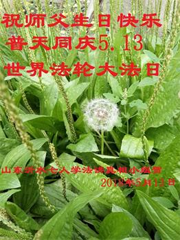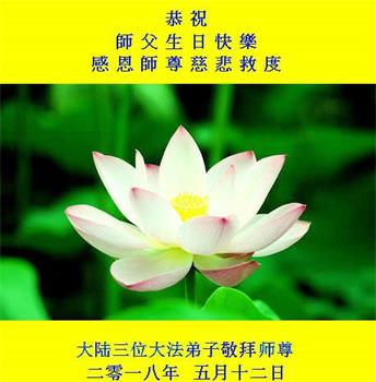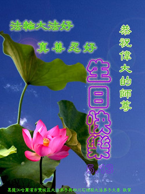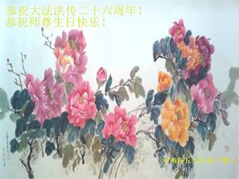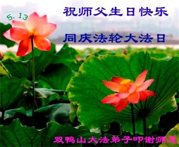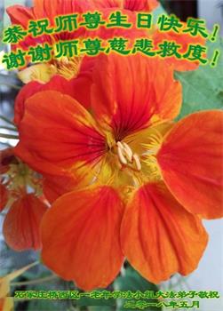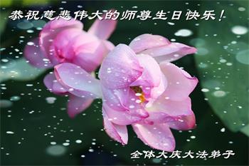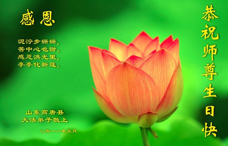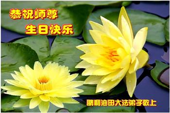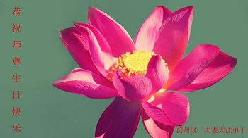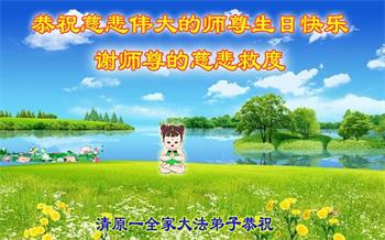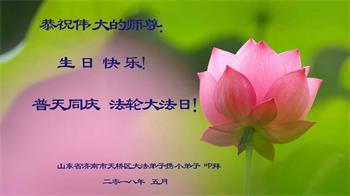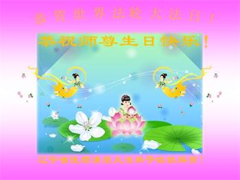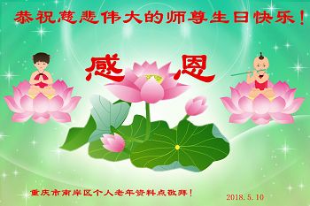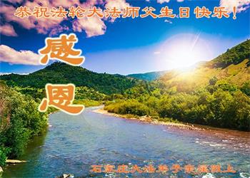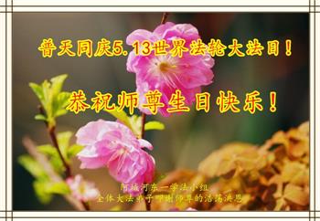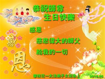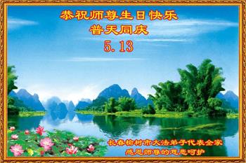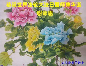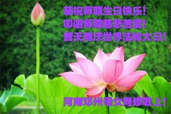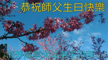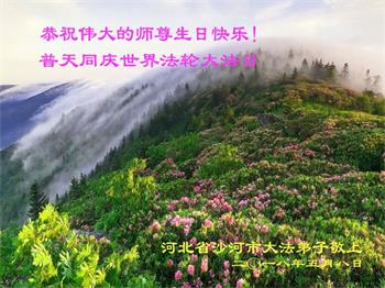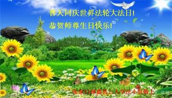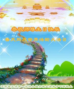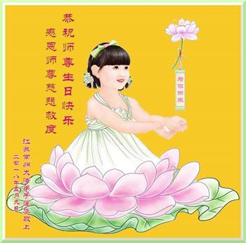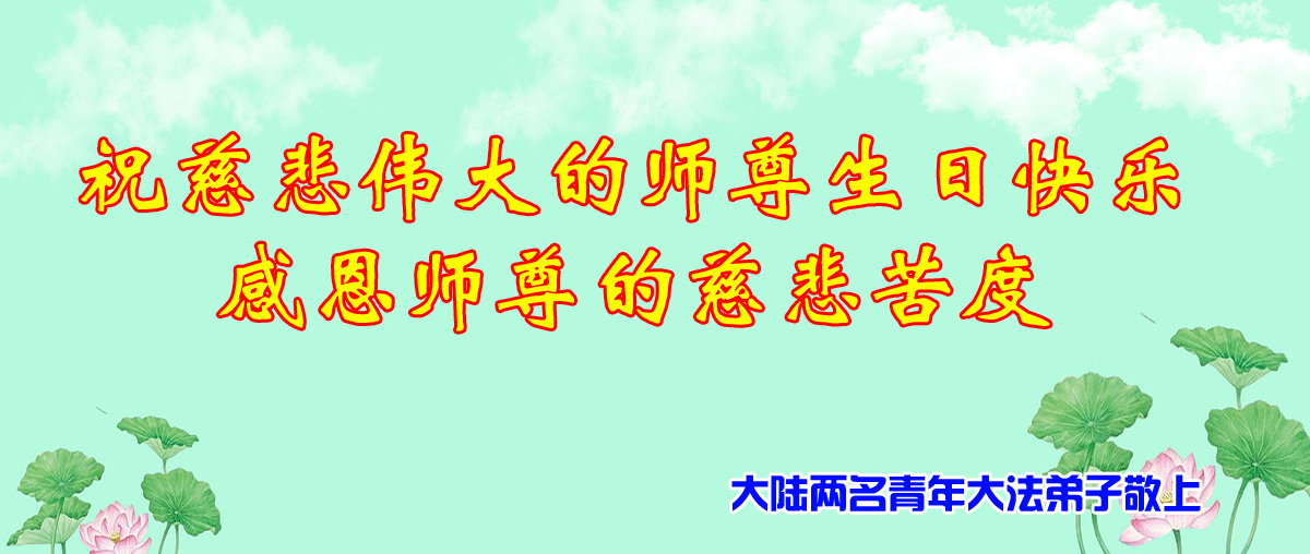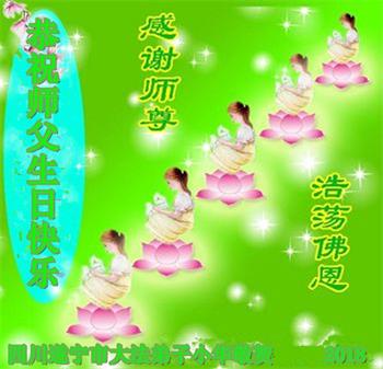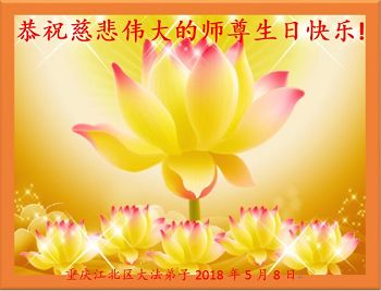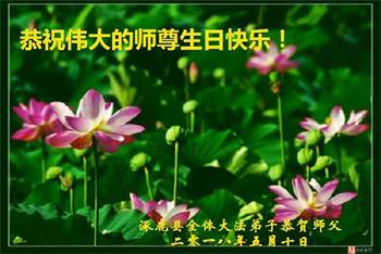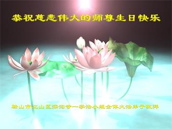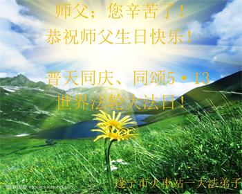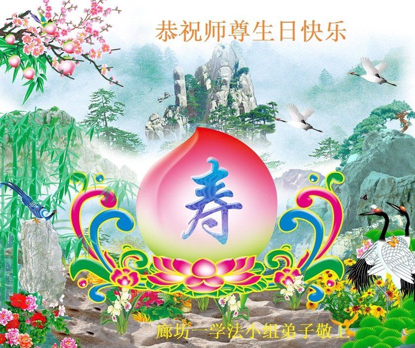 我们深谢恩师慈悲苦度!衷心恭祝师尊华诞快乐!在正法最后不多的时间里,我们一定会认真学好法,修好自己,从根本上改变常人的观念,正念正行,抓紧时间救度更多众生,完成正法时期大法弟子的历史使命,圆满跟随师尊回归家园。