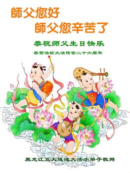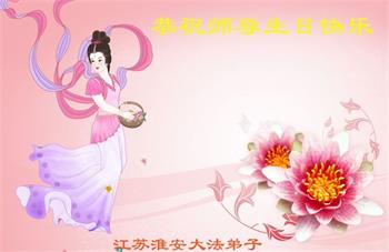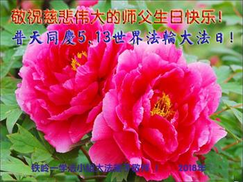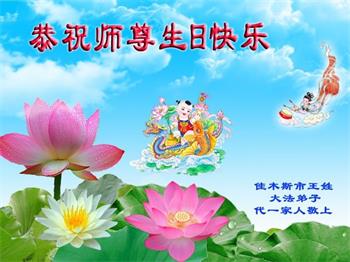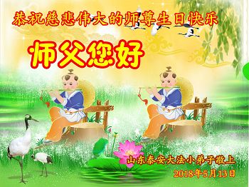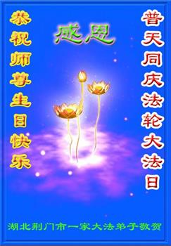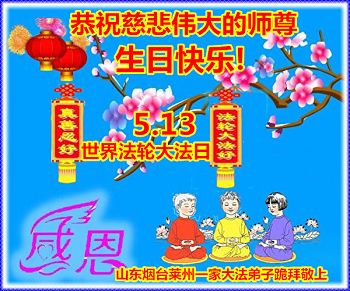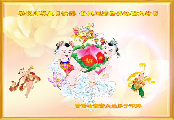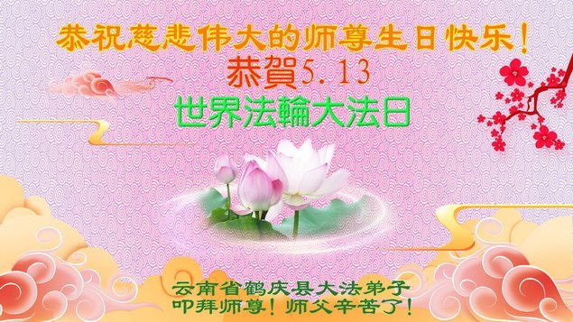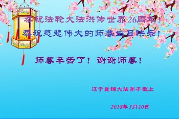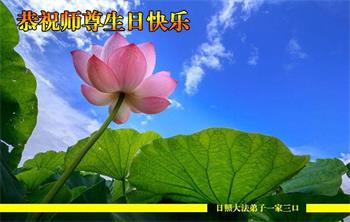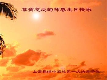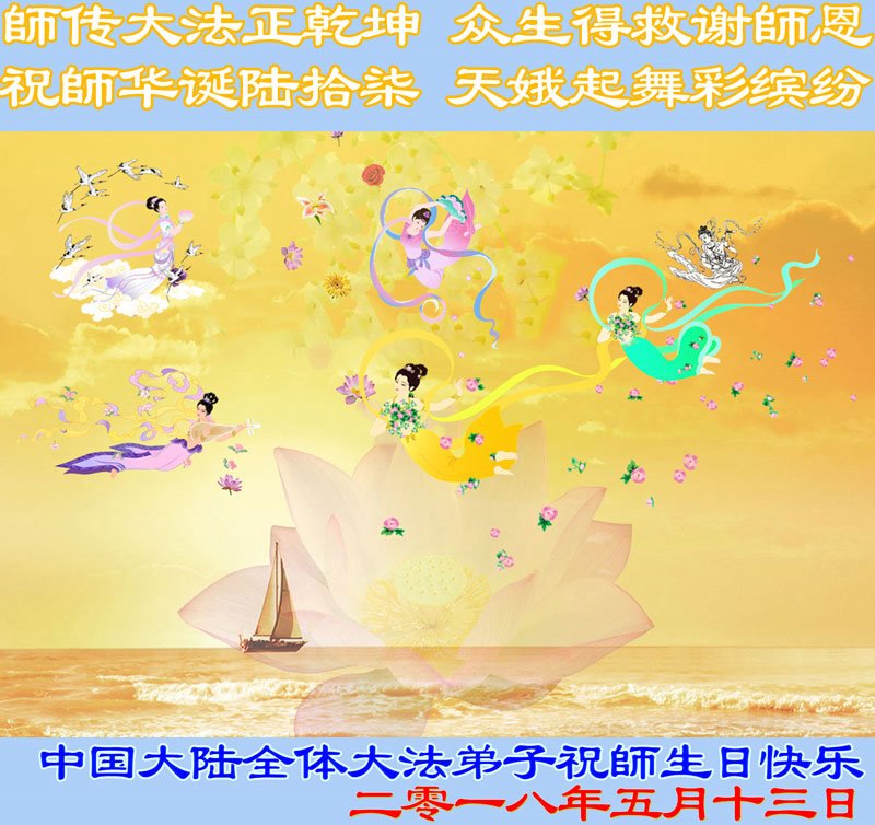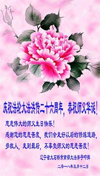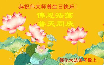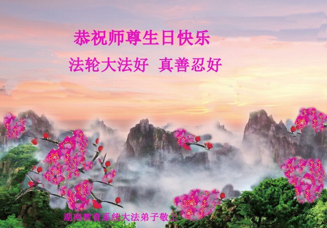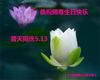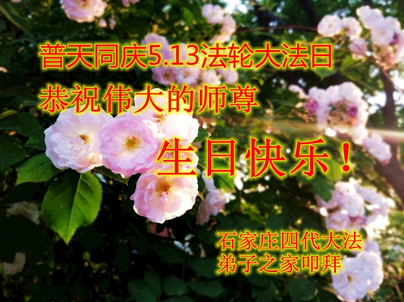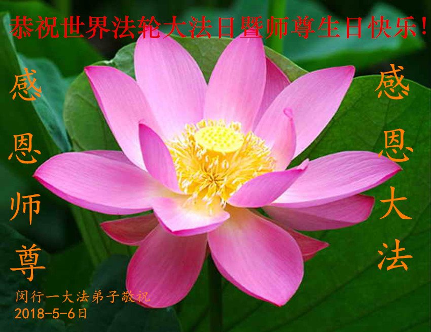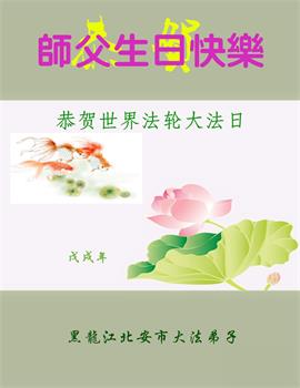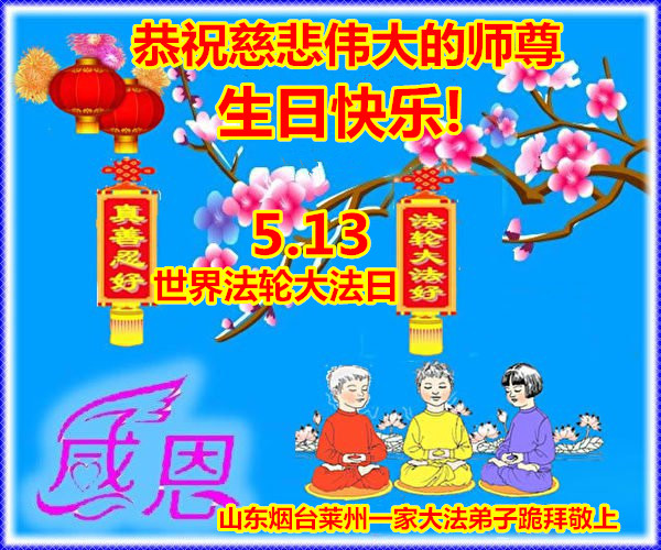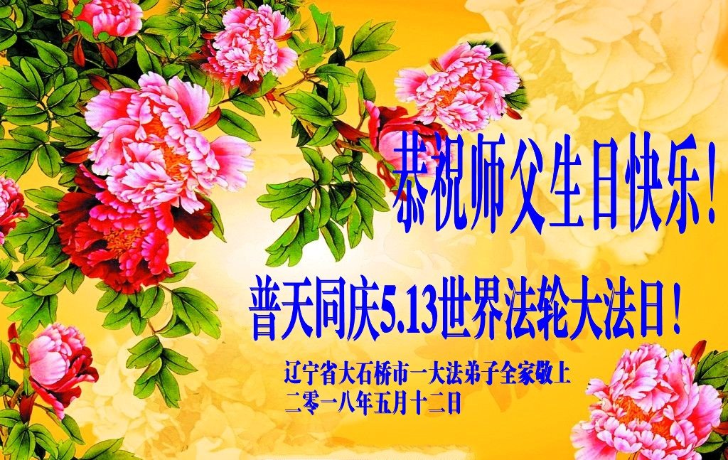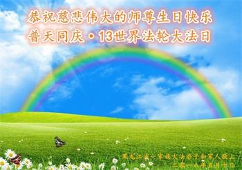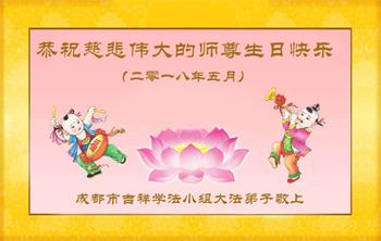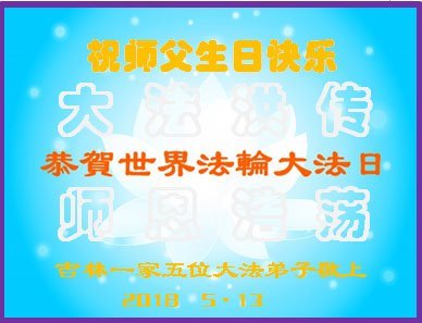 我们深谢恩师慈悲苦度!衷心恭祝师尊华诞快乐!在正法最后不多的时间里,我们一定会认真学好法,修好自己,从根本上改变常人的观念,正念正行,抓紧时间救度更多众生,完成正法时期大法弟子的历史使命,圆满跟随师尊回归家园。
