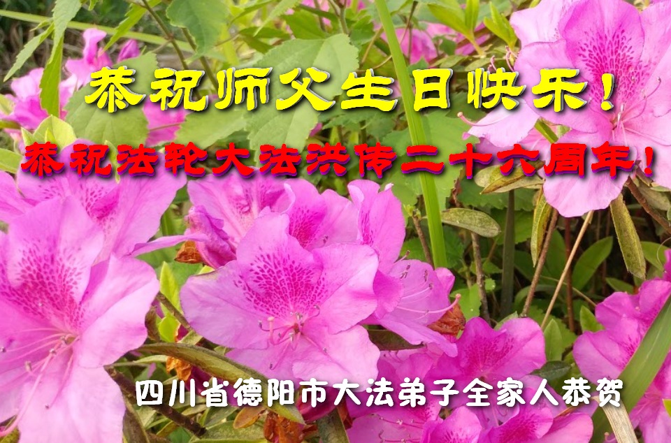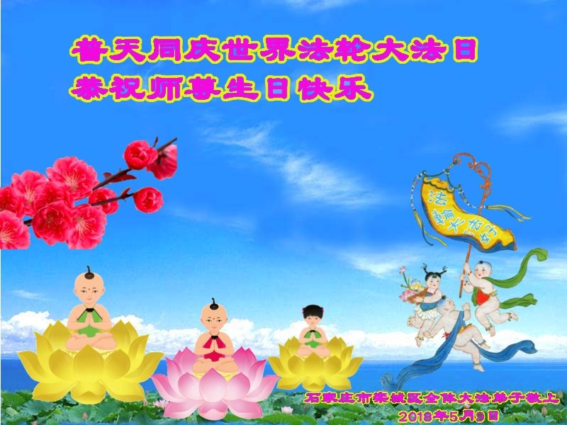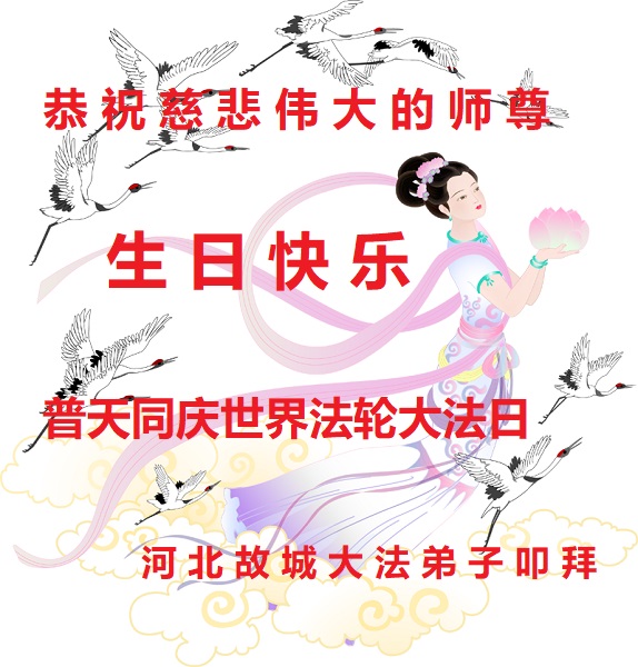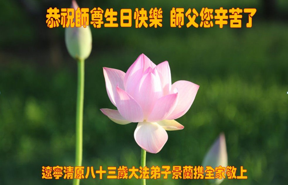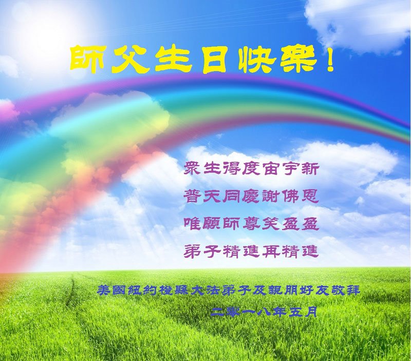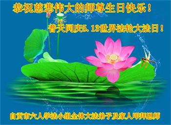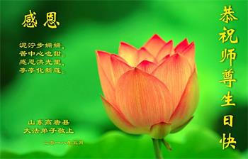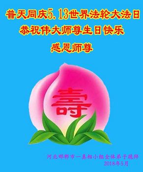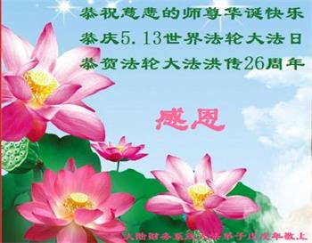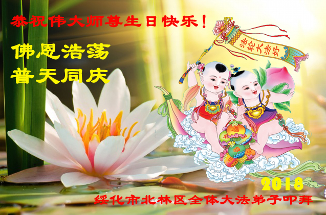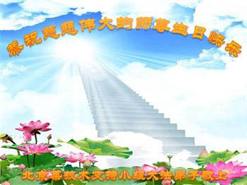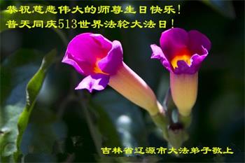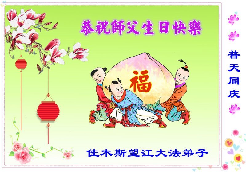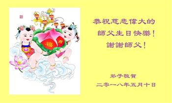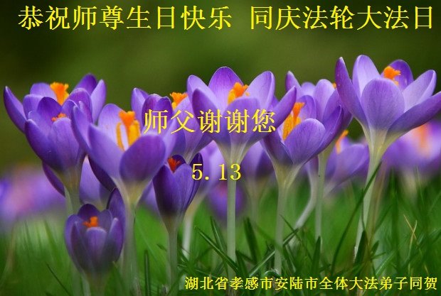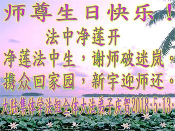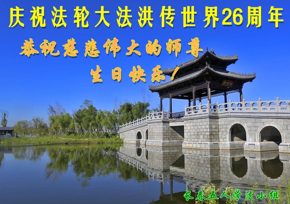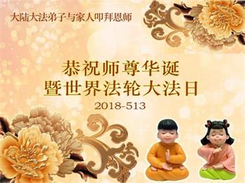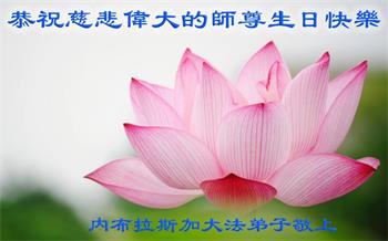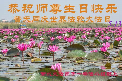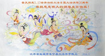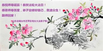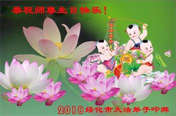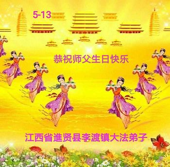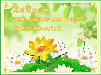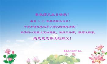 我们深谢恩师慈悲苦度!衷心恭祝师尊华诞快乐!在正法最后不多的时间里,我们一定会认真学好法,修好自己,从根本上改变常人的观念,正念正行,抓紧时间救度更多众生,完成正法时期大法弟子的历史使命,圆满跟随师尊回归家园。