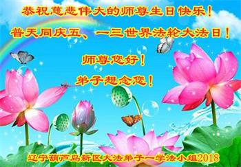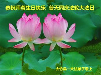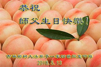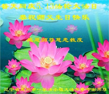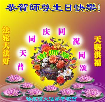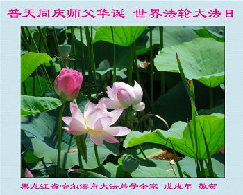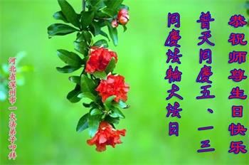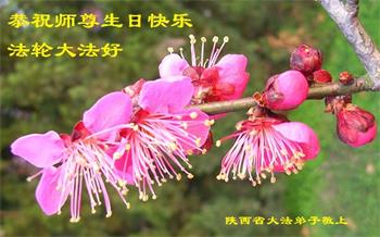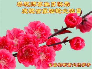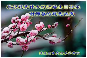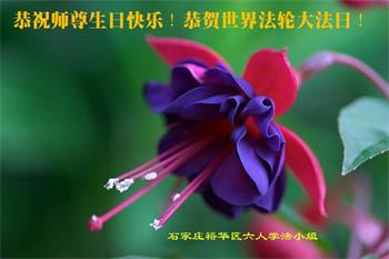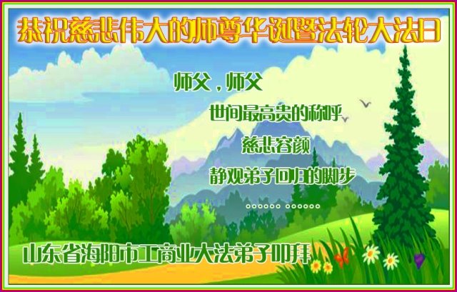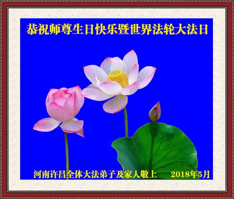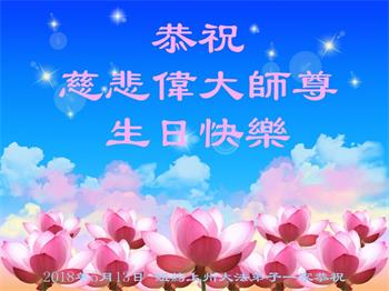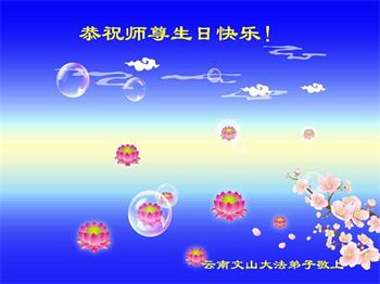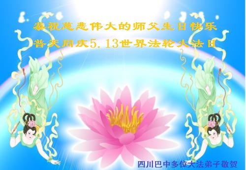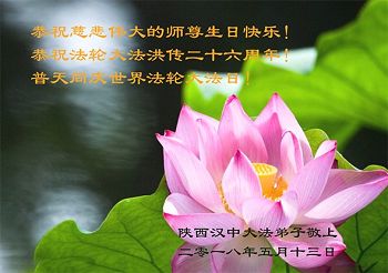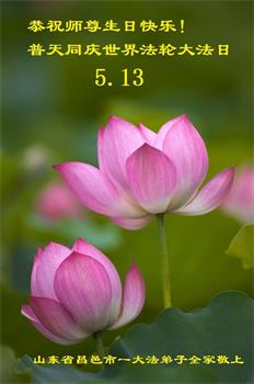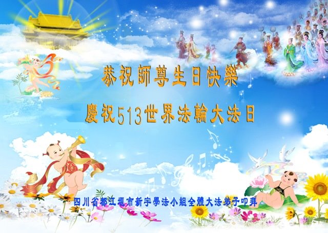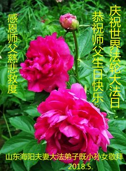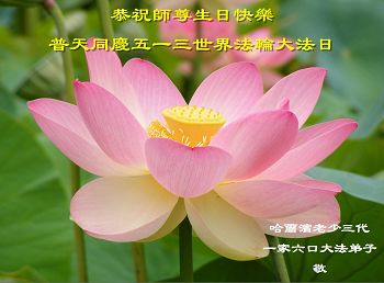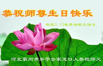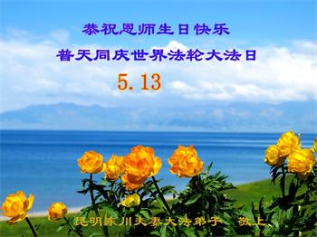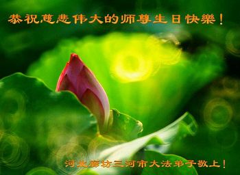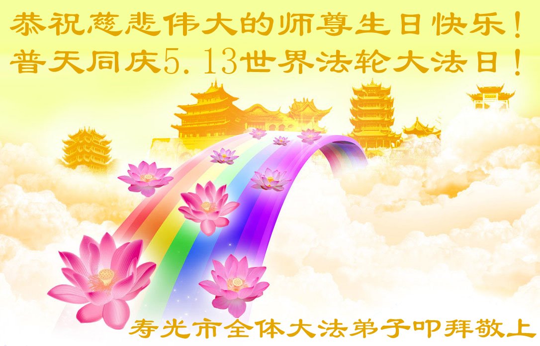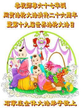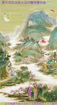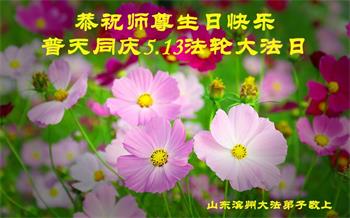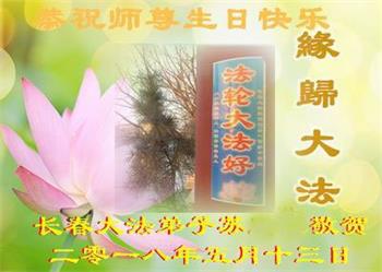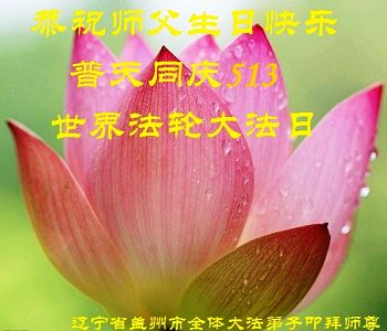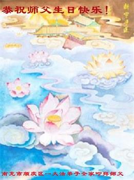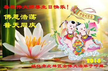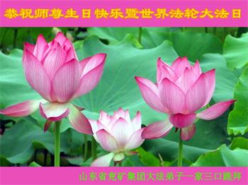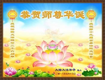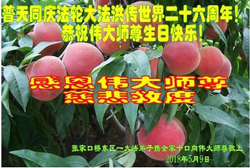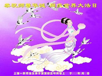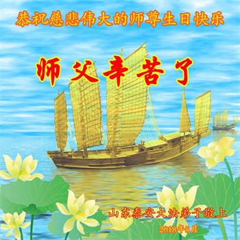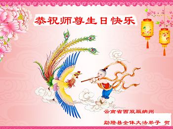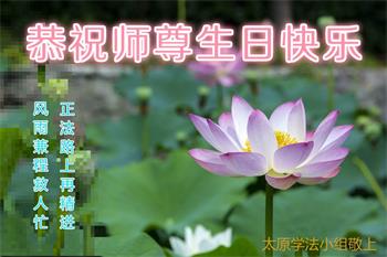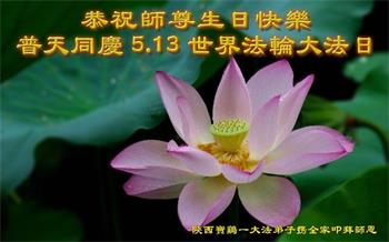 我们深谢恩师慈悲苦度!衷心恭祝师尊华诞快乐!在正法最后不多的时间里,我们一定会认真学好法,修好自己,从根本上改变常人的观念,正念正行,抓紧时间救度更多众生,完成正法时期大法弟子的历史使命,圆满跟随师尊回归家园。