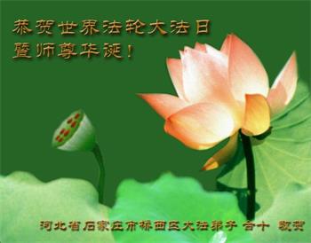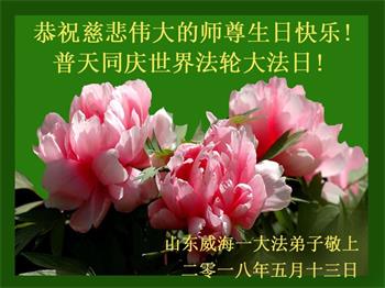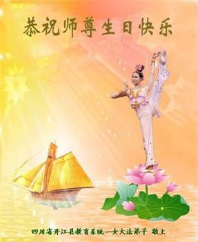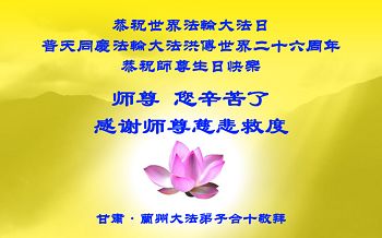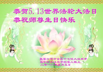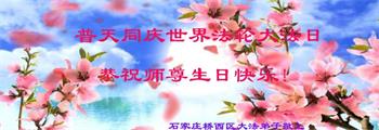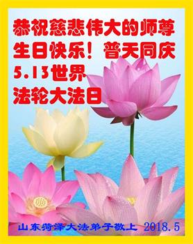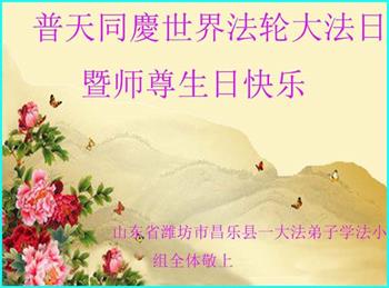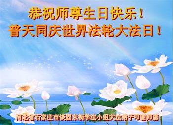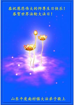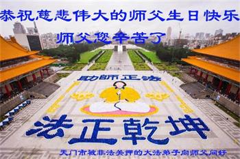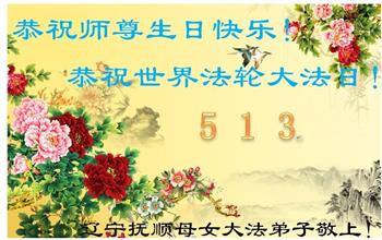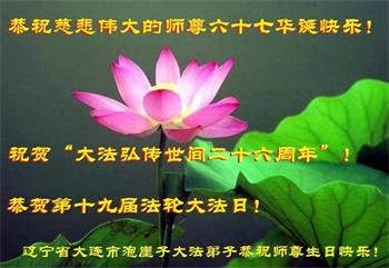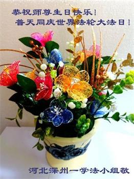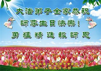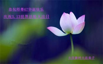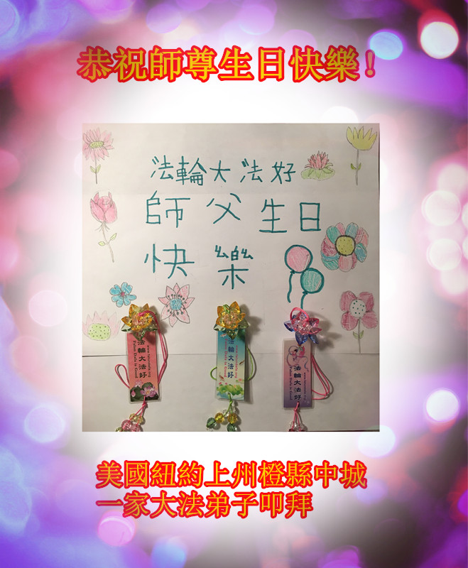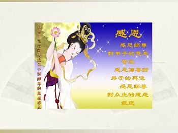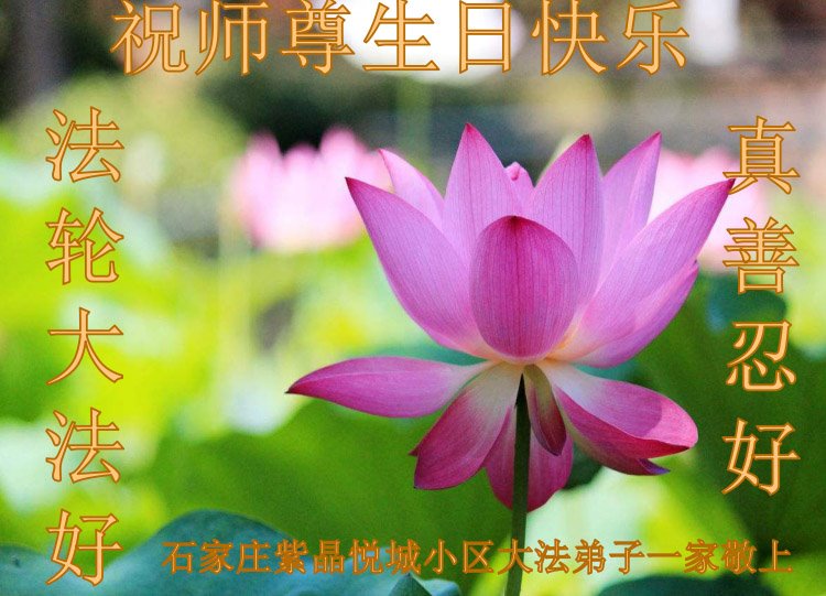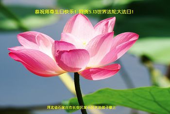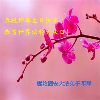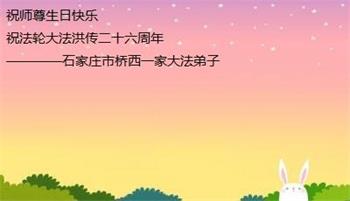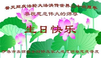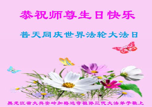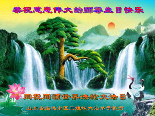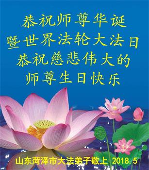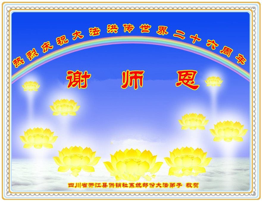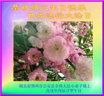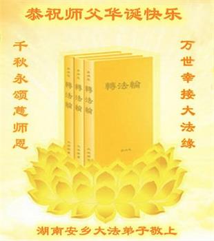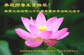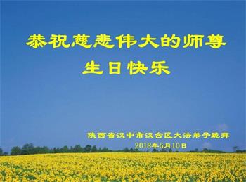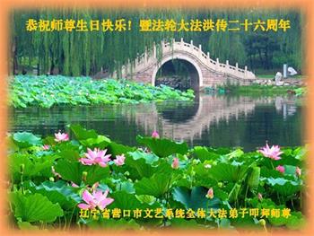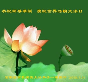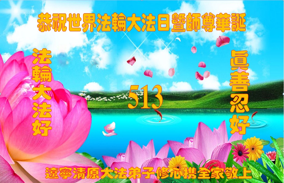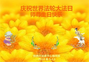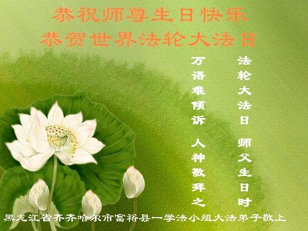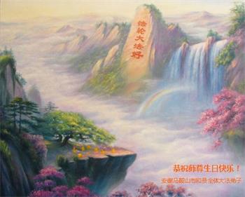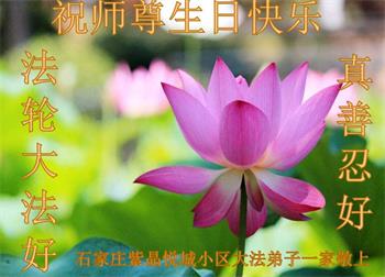 我们深谢恩师慈悲苦度!衷心恭祝师尊华诞快乐!在正法最后不多的时间里,我们一定会认真学好法,修好自己,从根本上改变常人的观念,正念正行,抓紧时间救度更多众生,完成正法时期大法弟子的历史使命,圆满跟随师尊回归家园。
