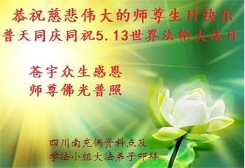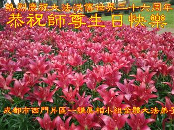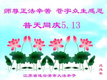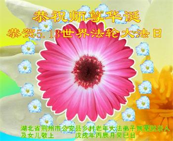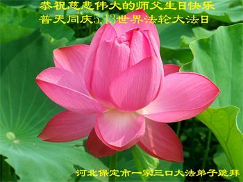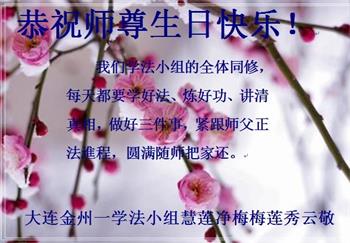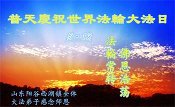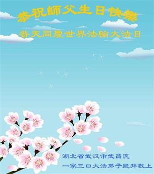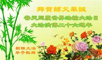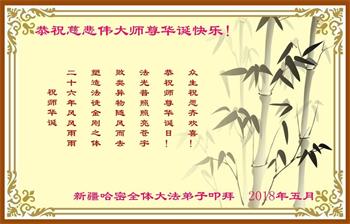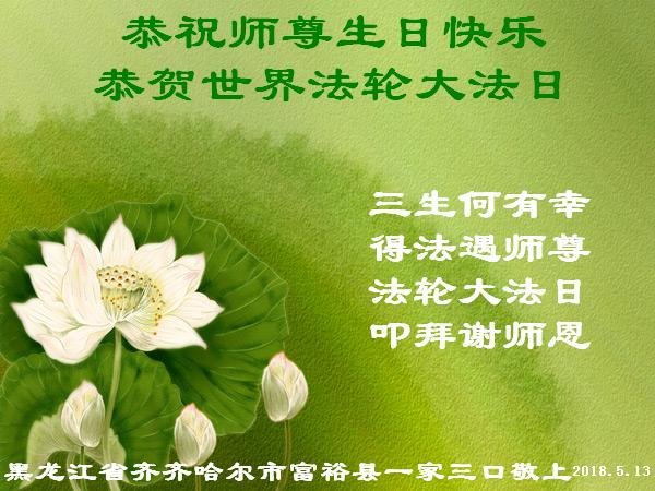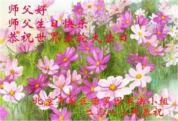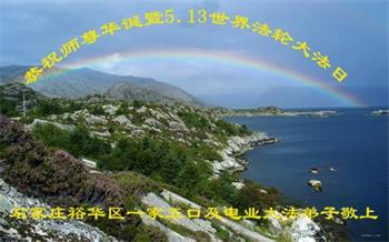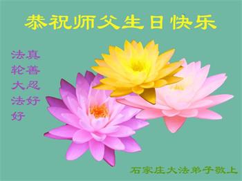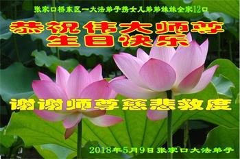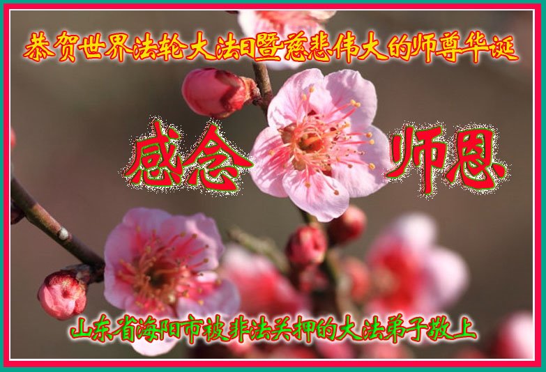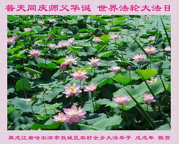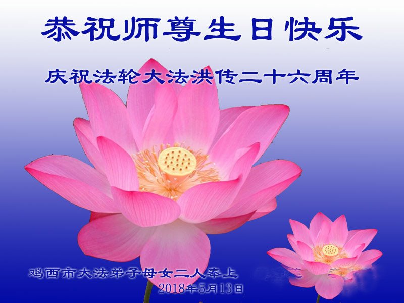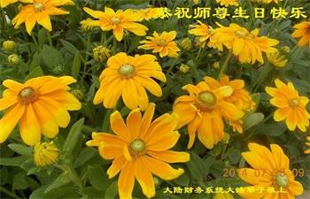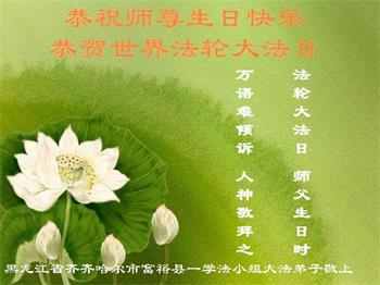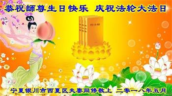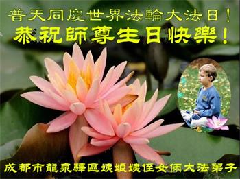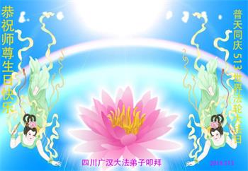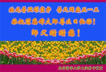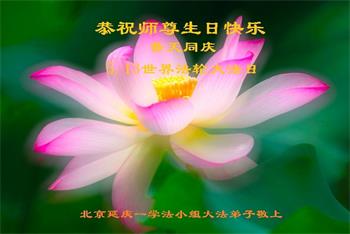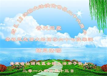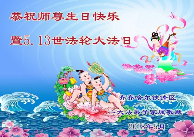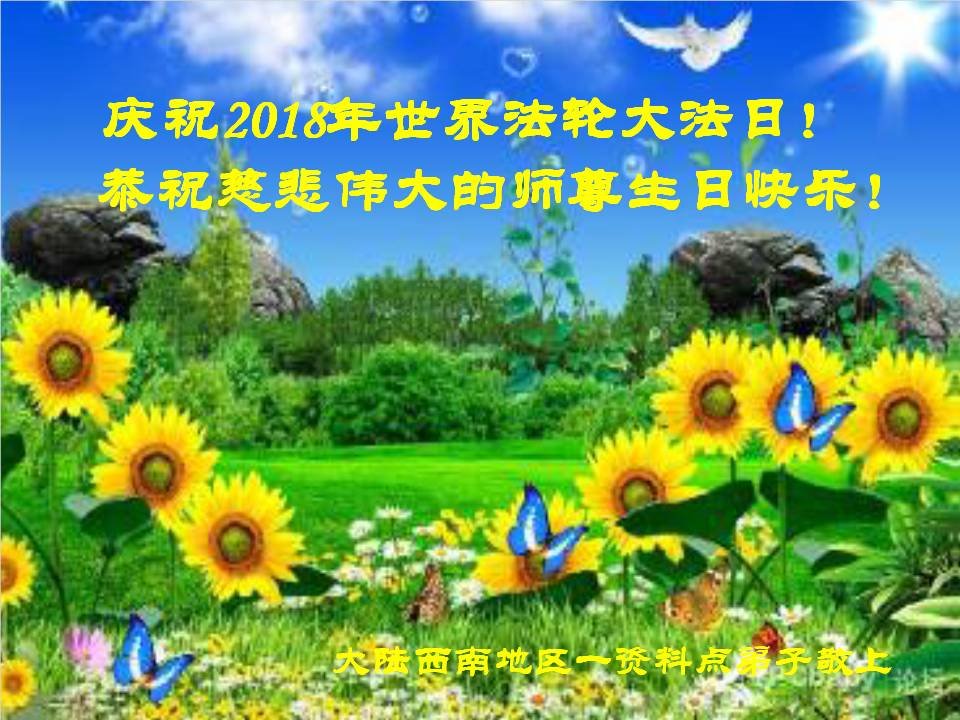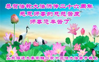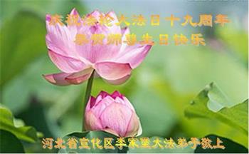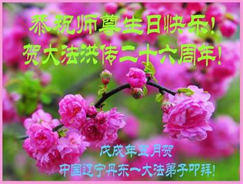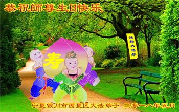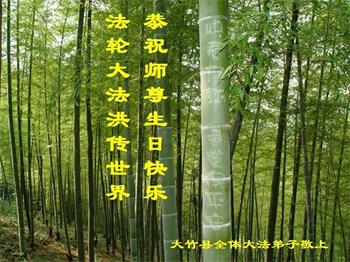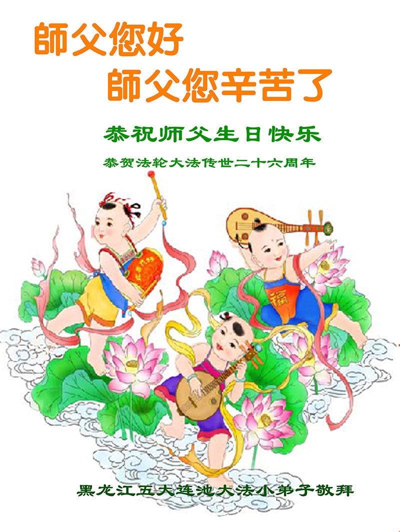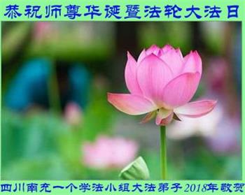 我们深谢恩师慈悲苦度!衷心恭祝师尊华诞快乐!在正法最后不多的时间里,我们一定会认真学好法,修好自己,从根本上改变常人的观念,正念正行,抓紧时间救度更多众生,完成正法时期大法弟子的历史使命,圆满跟随师尊回归家园。