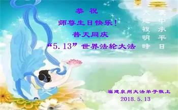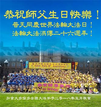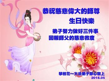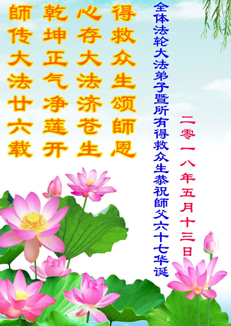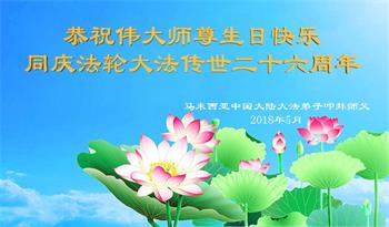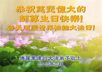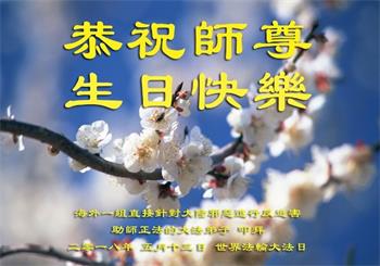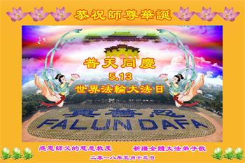 <英文版: http://en.minghui.org/html/articles/2018/5/14/170342.html>普天同庆大法日 五十余国大法弟子恭祝师尊华诞