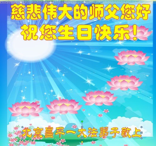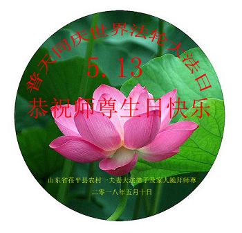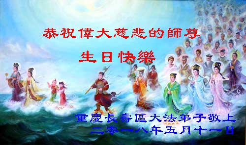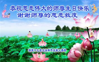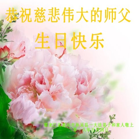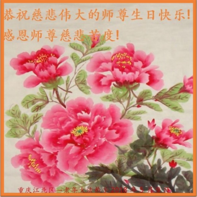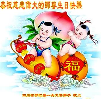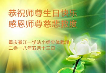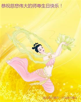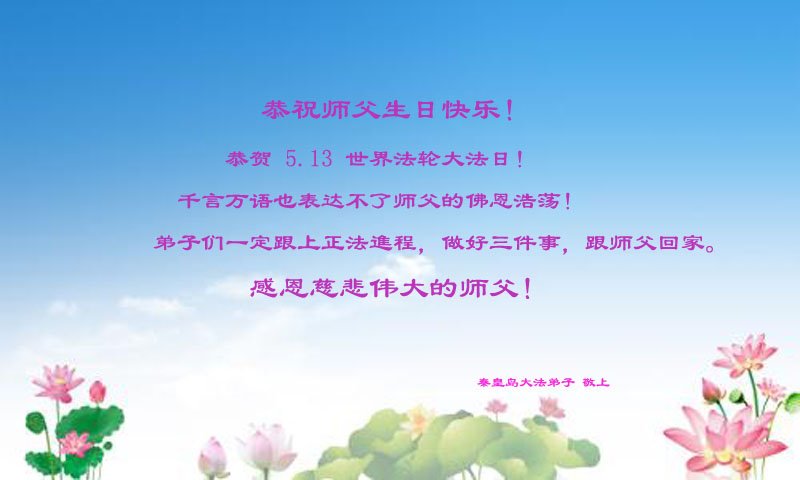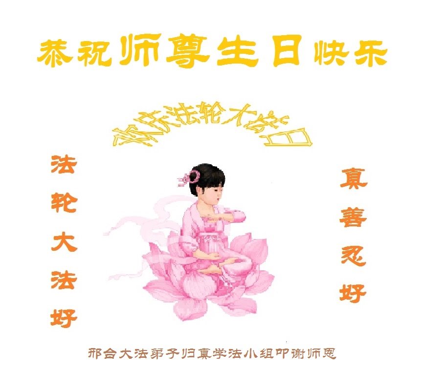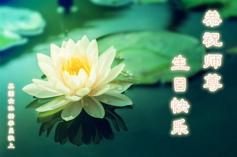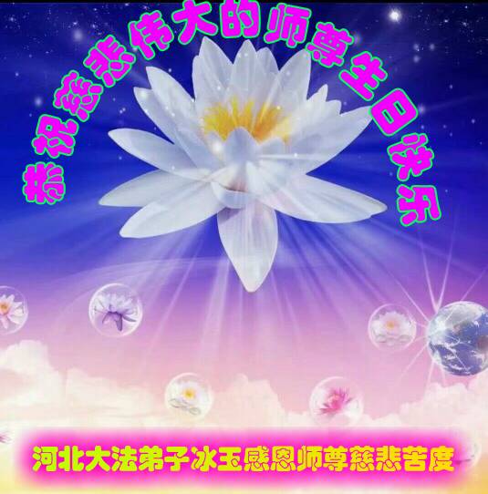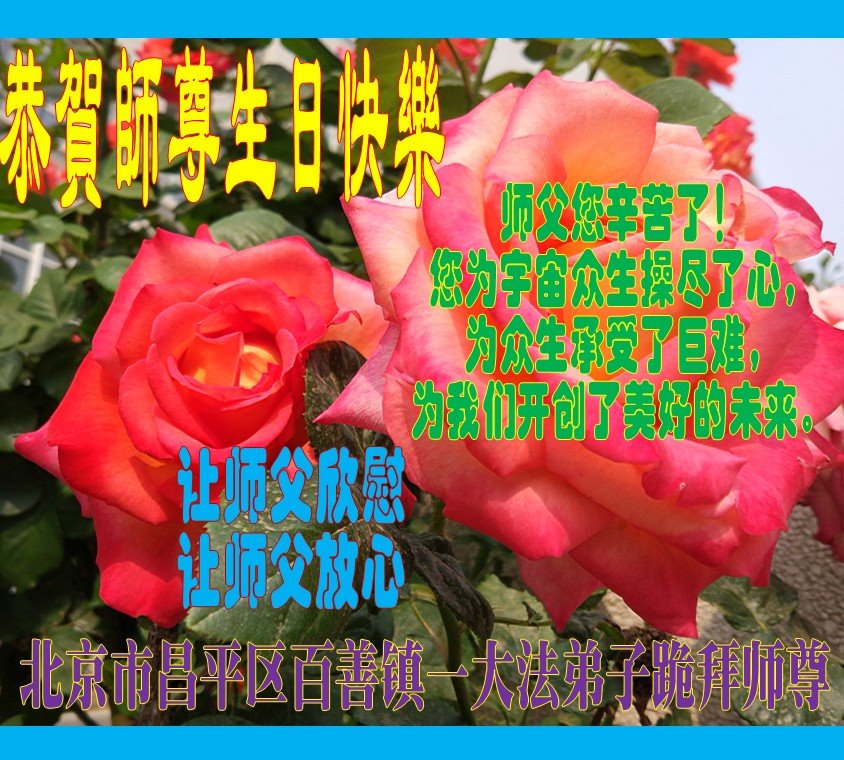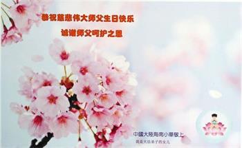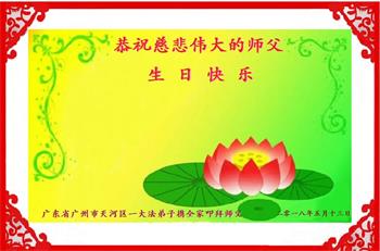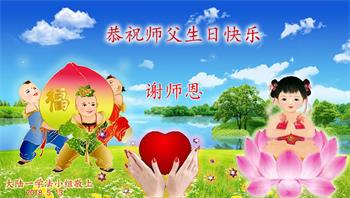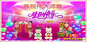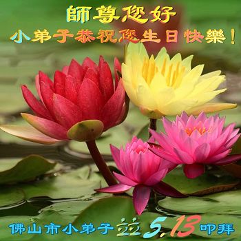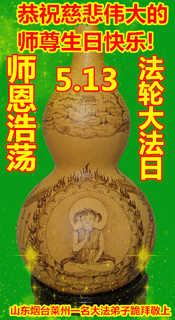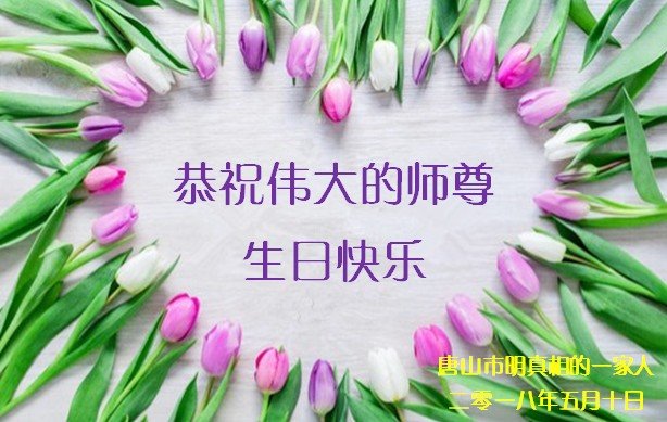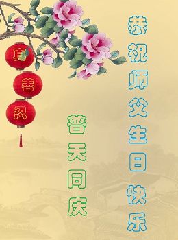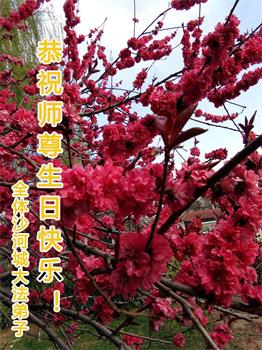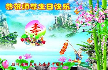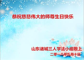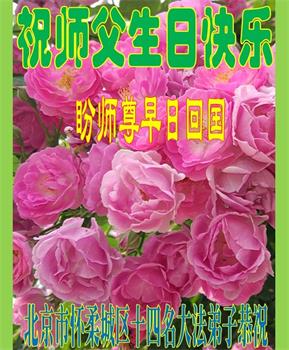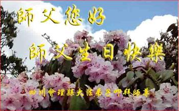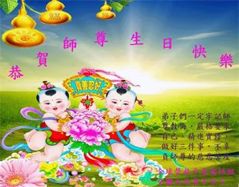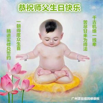 值此普天同庆的日子,弟子叩拜师尊!祝师尊生日快乐!我们一定按师父的要求,做好三件事,勇猛精進,修炼如初。紧随师行,多多救人。完成我们的神圣誓约,以报师恩。