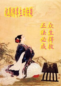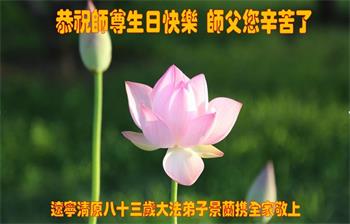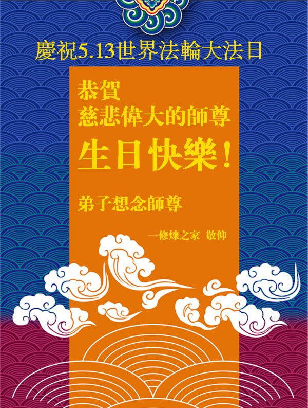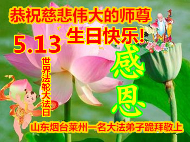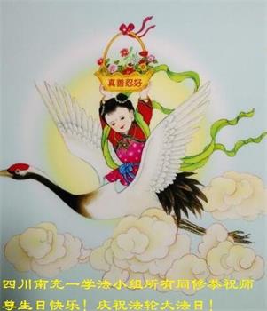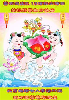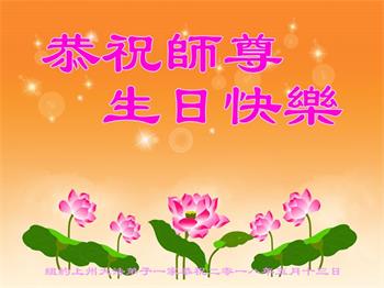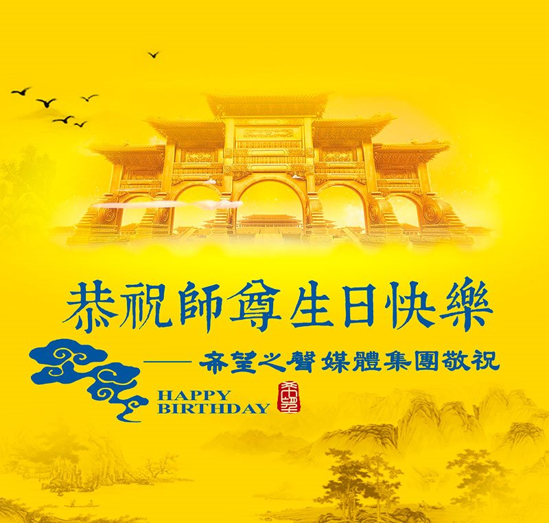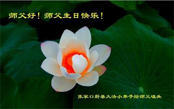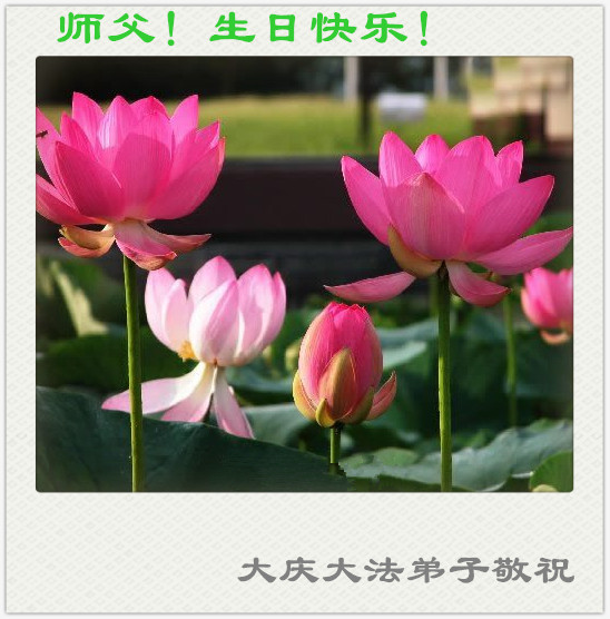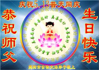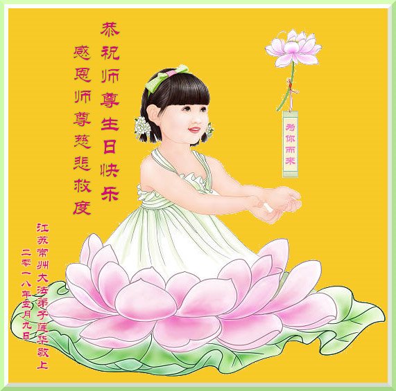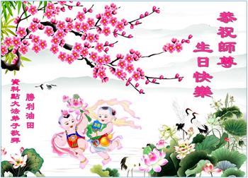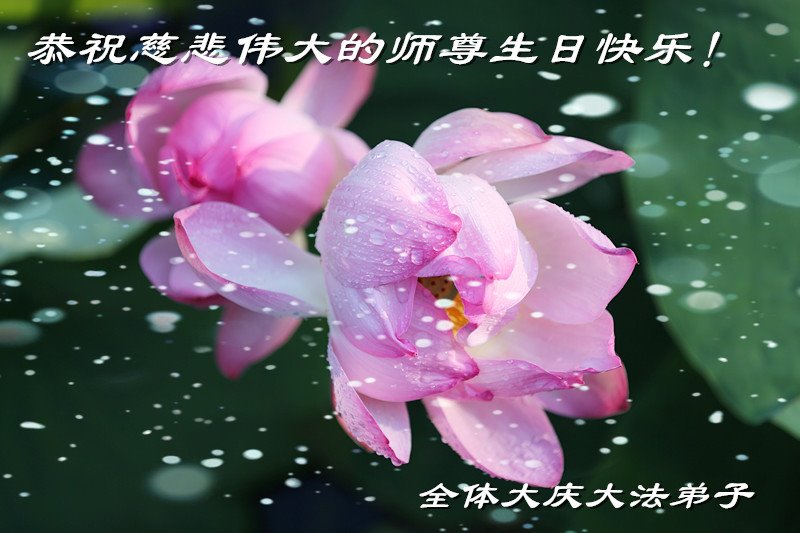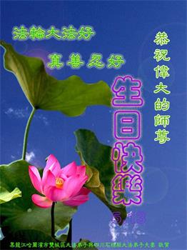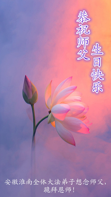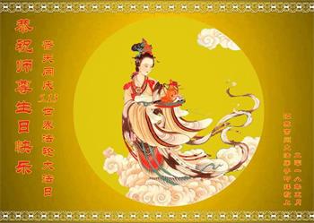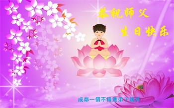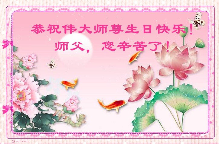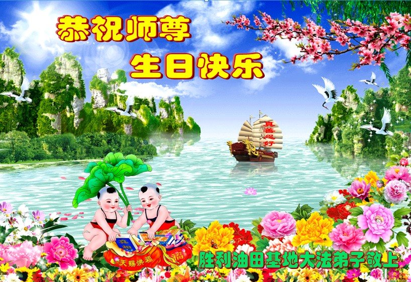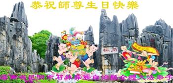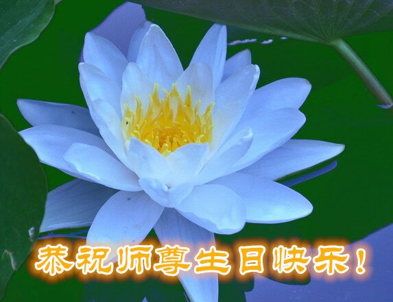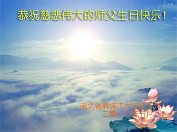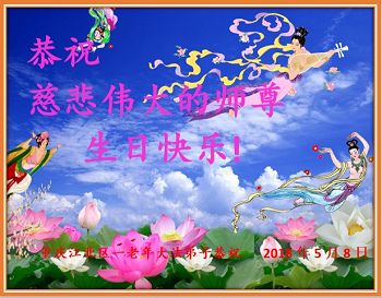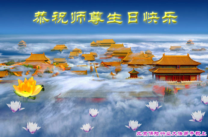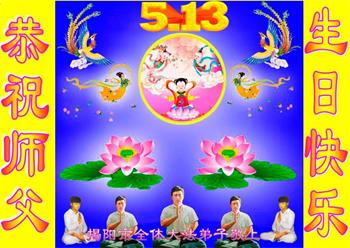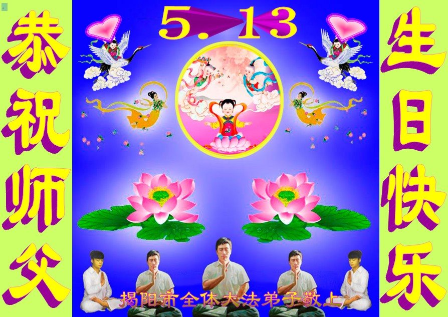 值此普天同庆的日子,弟子叩拜师尊!祝师尊生日快乐!我们一定按师父的要求,做好三件事,勇猛精進,修炼如初。紧随师行,多多救人。完成我们的神圣誓约,以报师恩。