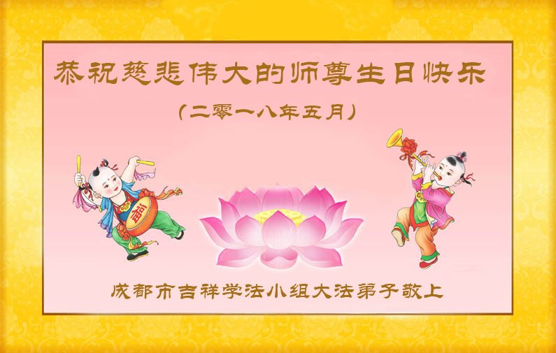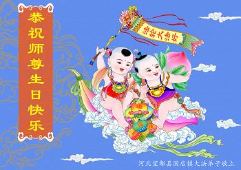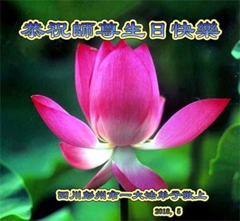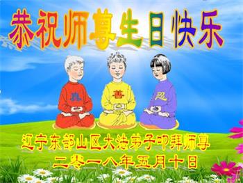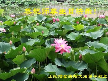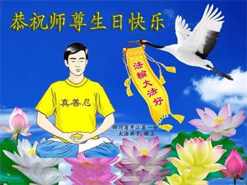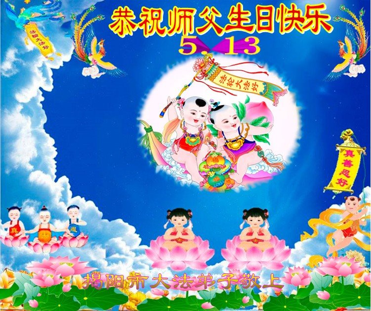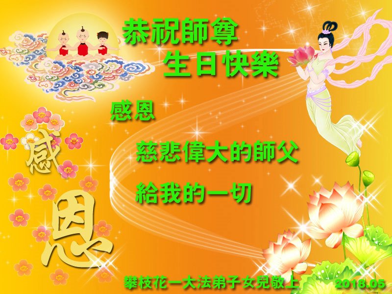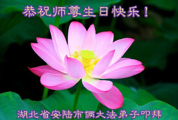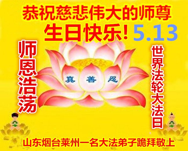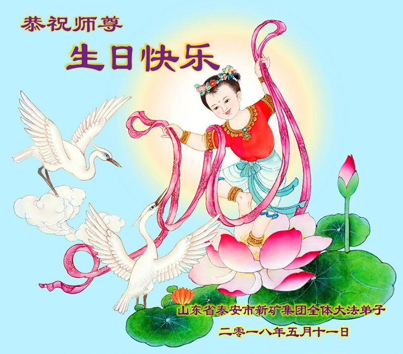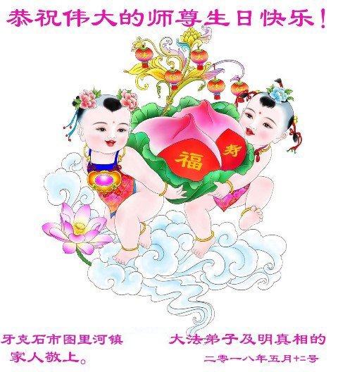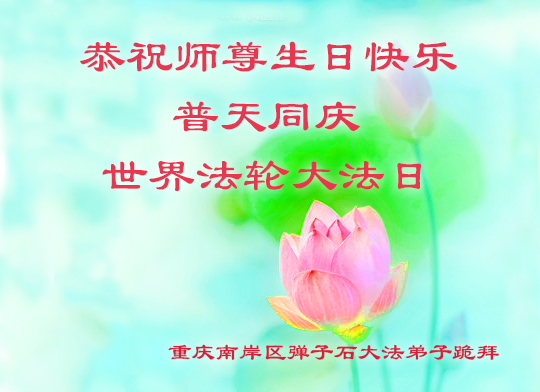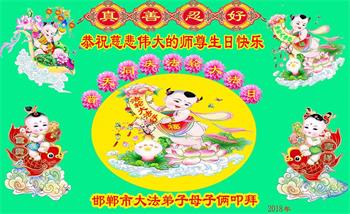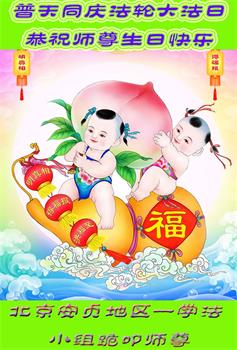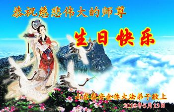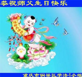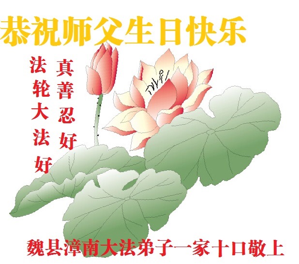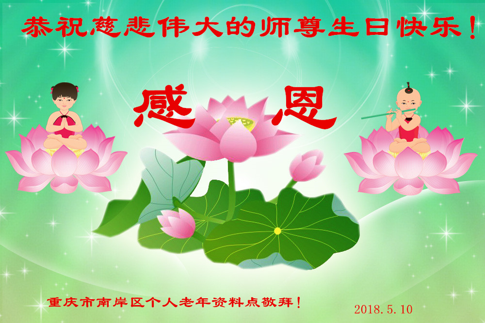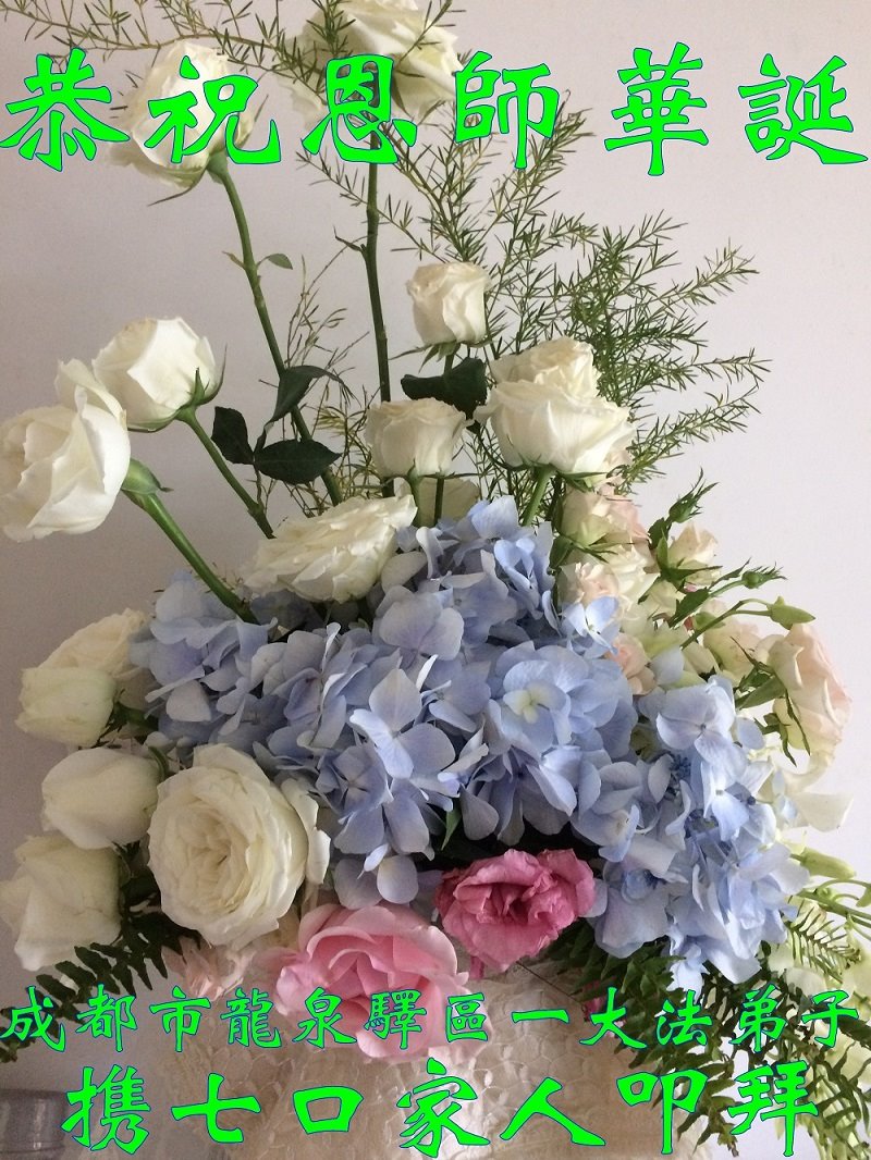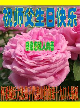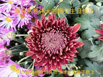 值此普天同庆的日子,弟子叩拜师尊!祝师尊生日快乐!我们一定按师父的要求,做好三件事,勇猛精進,修炼如初。紧随师行,多多救人。完成我们的神圣誓约,以报师恩。