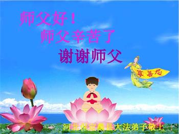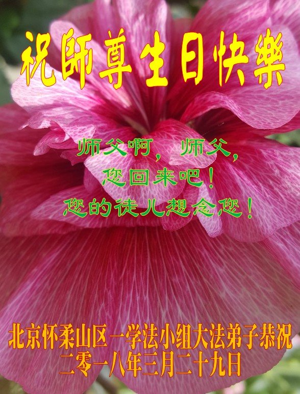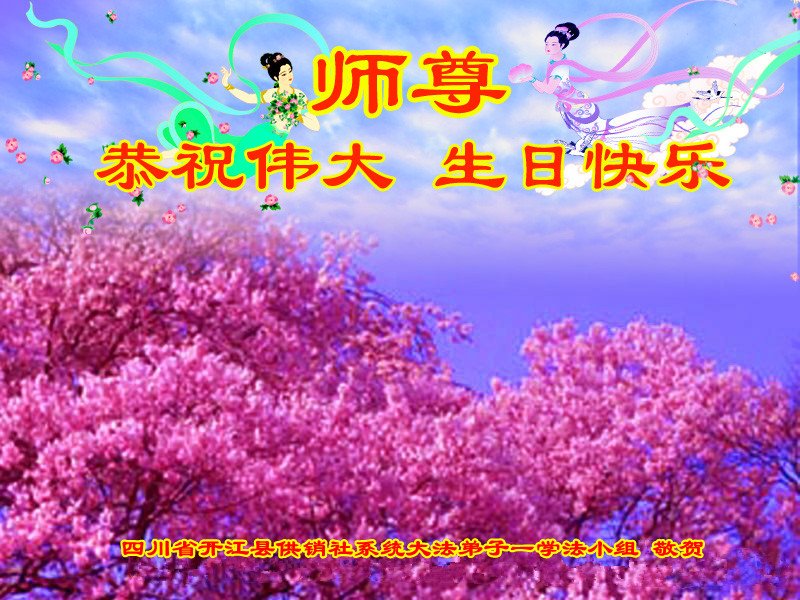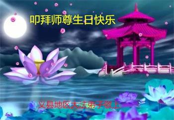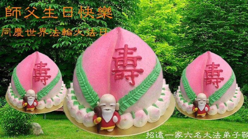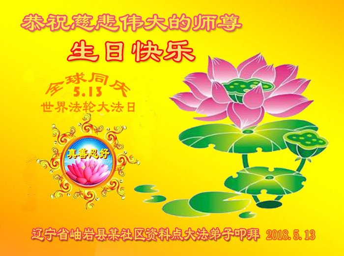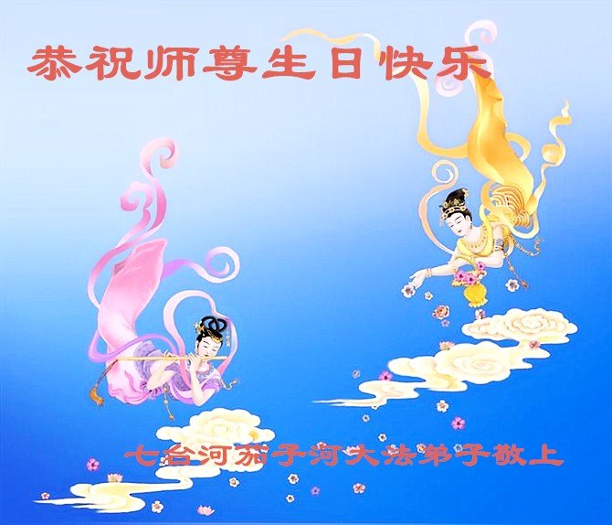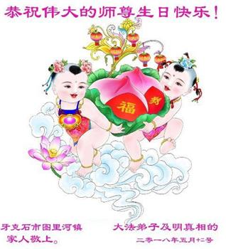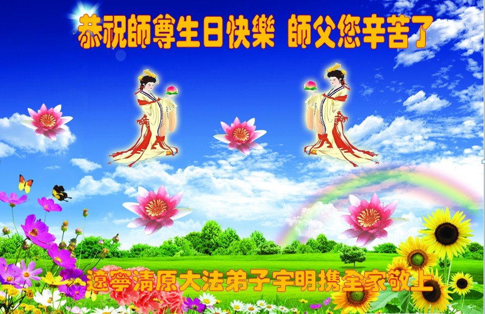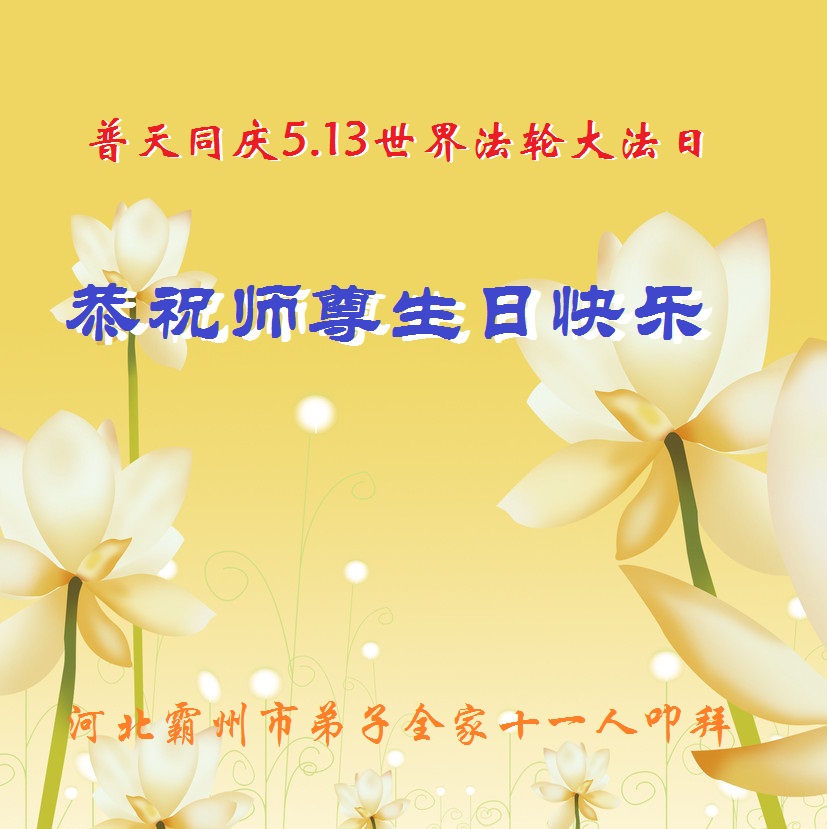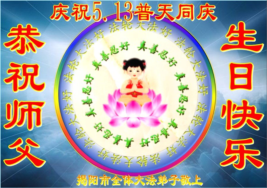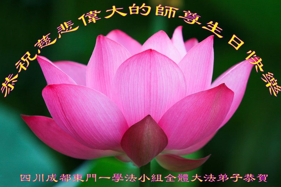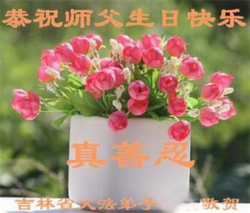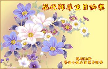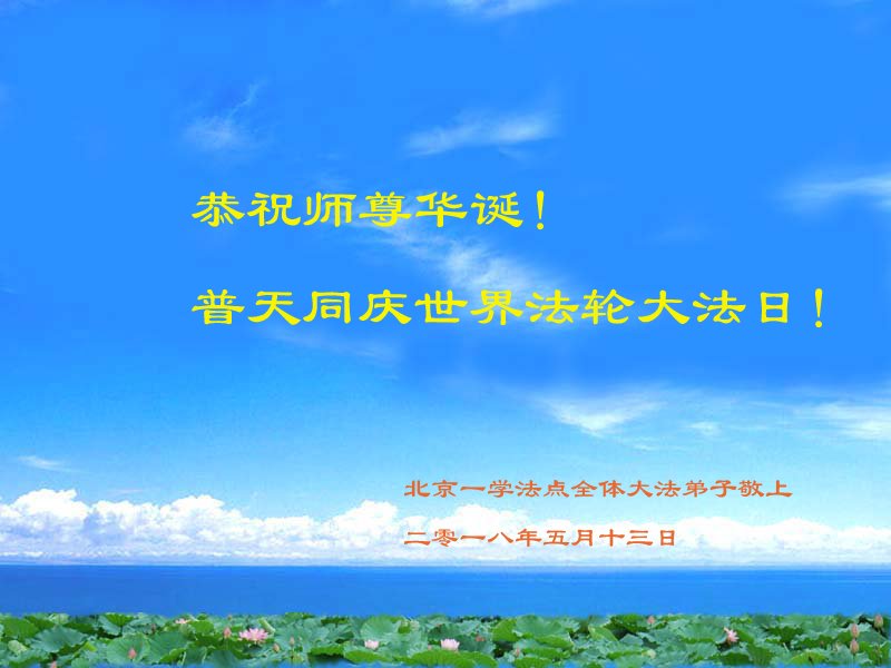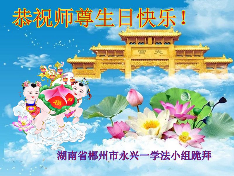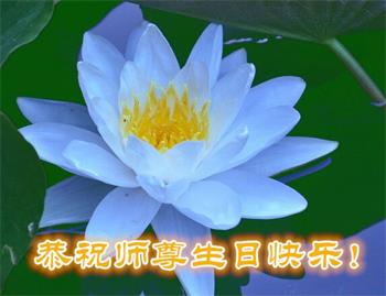 值此普天同庆的日子,弟子叩拜师尊!祝师尊生日快乐!我们一定按师父的要求,做好三件事,勇猛精進,修炼如初。紧随师行,多多救人。完成我们的神圣誓约,以报师恩。