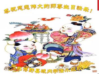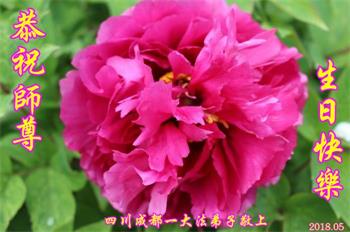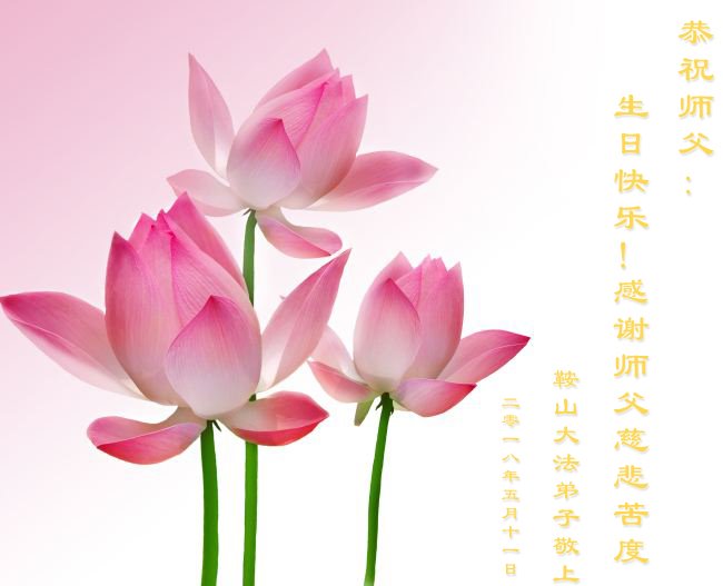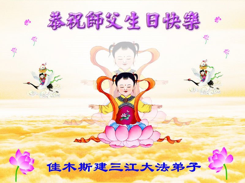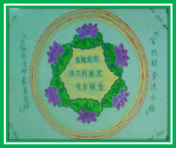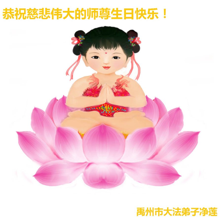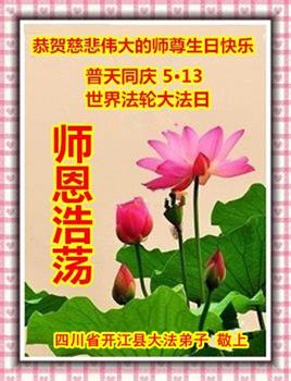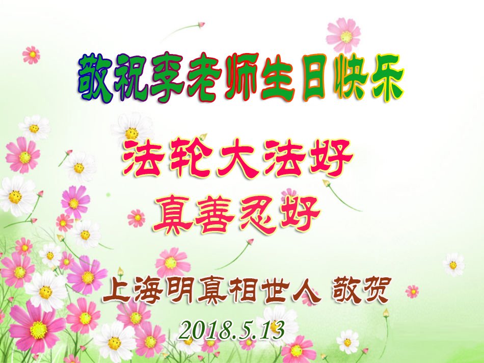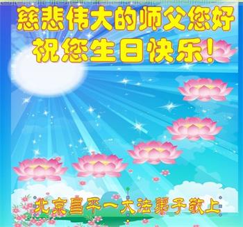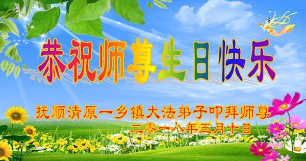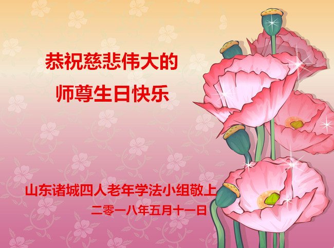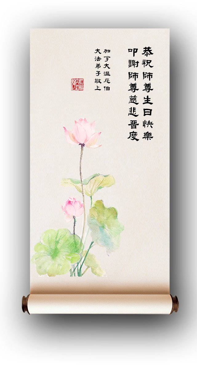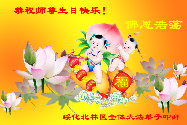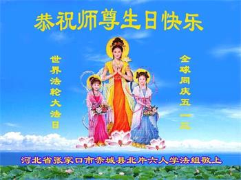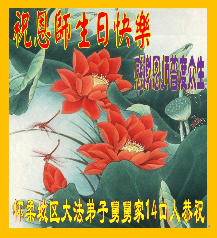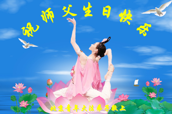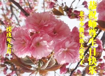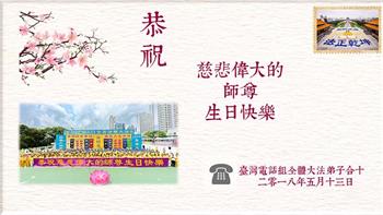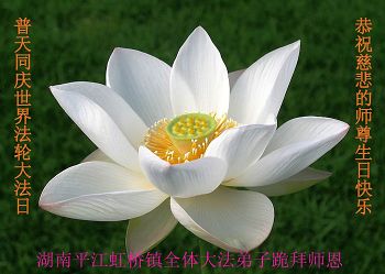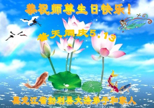 值此普天同庆的日子,弟子叩拜师尊!祝师尊生日快乐!我们一定按师父的要求,做好三件事,勇猛精進,修炼如初。紧随师行,多多救人。完成我们的神圣誓约,以报师恩。