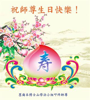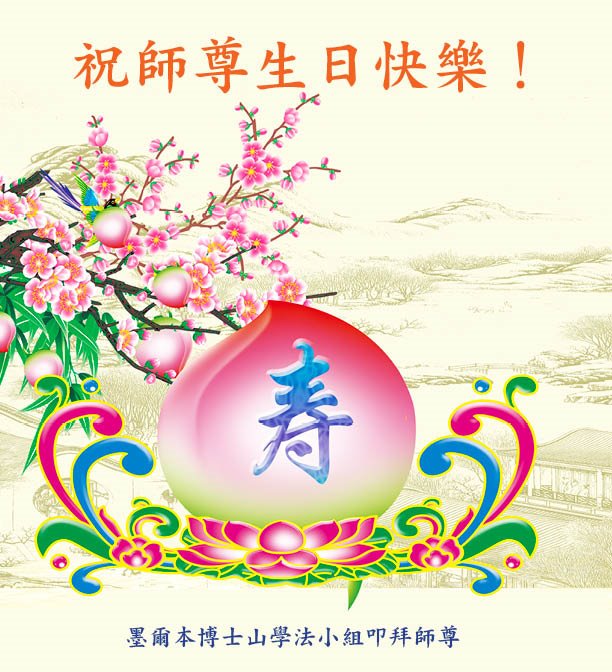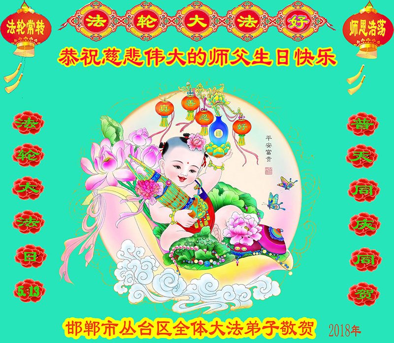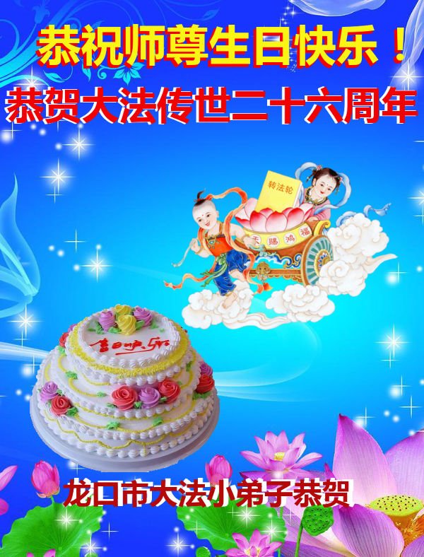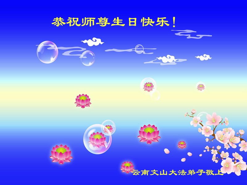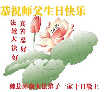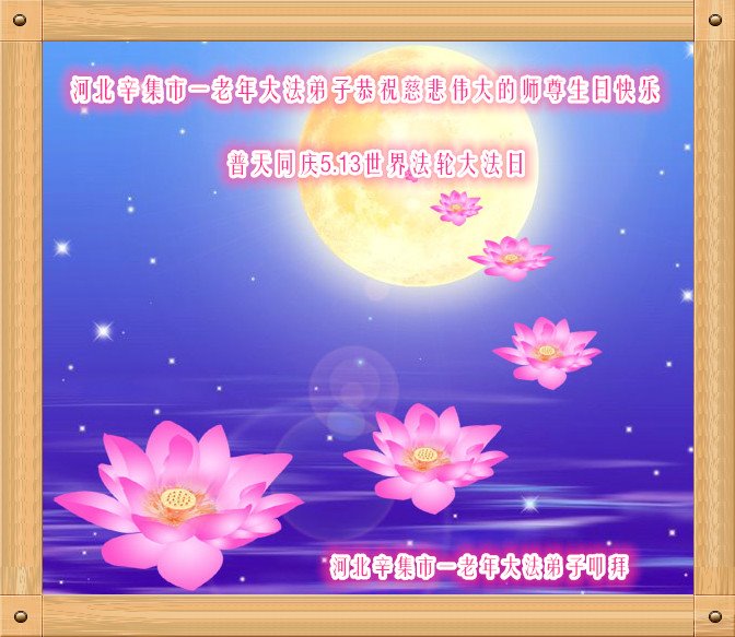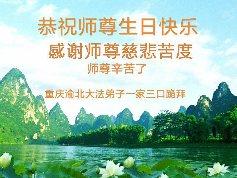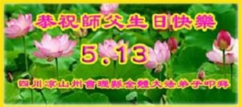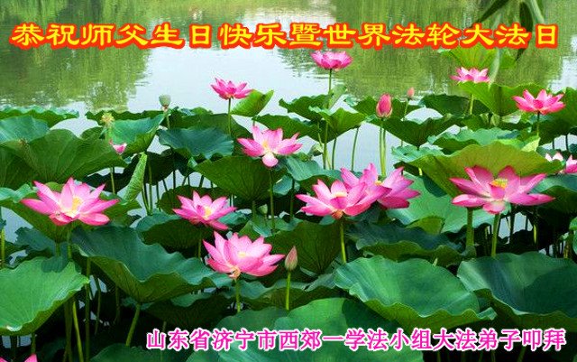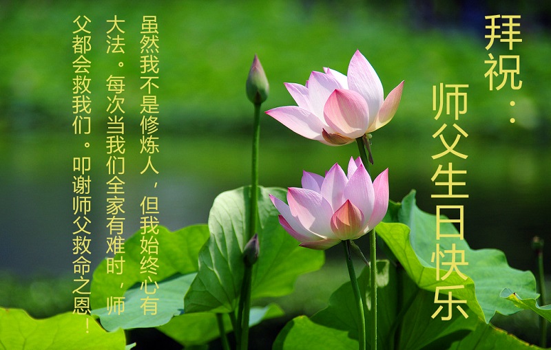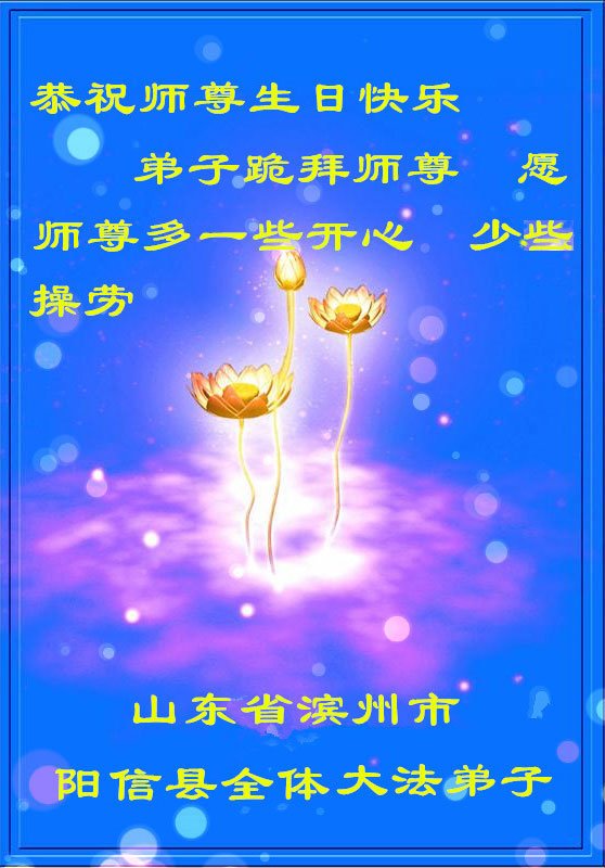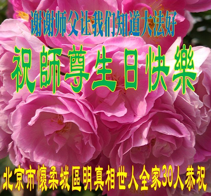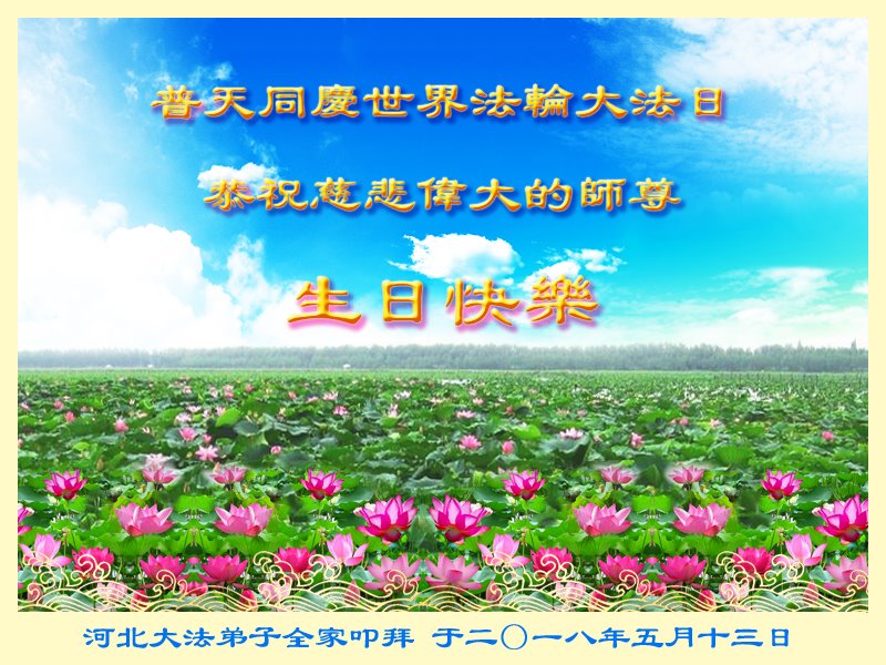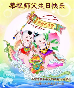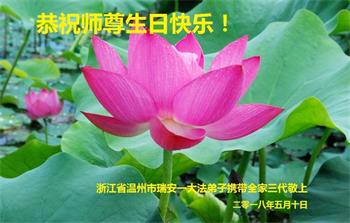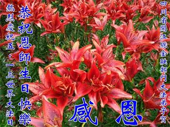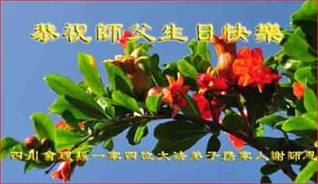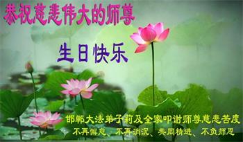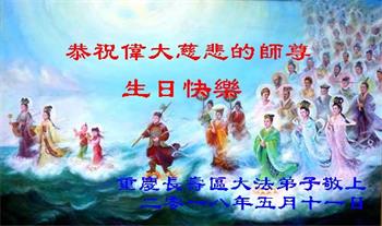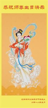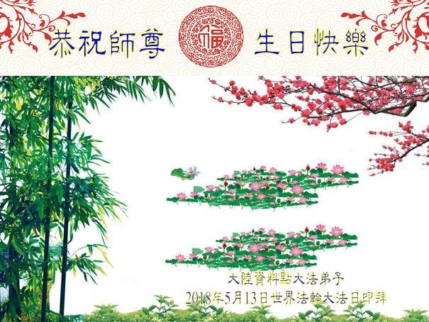 值此普天同庆的日子,弟子叩拜师尊!祝师尊生日快乐!我们一定按师父的要求,做好三件事,勇猛精進,修炼如初。紧随师行,多多救人。完成我们的神圣誓约,以报师恩。