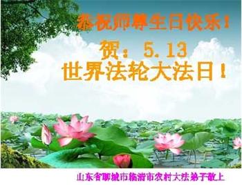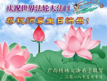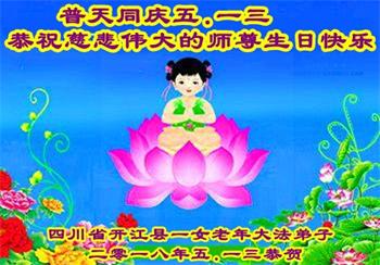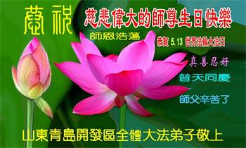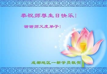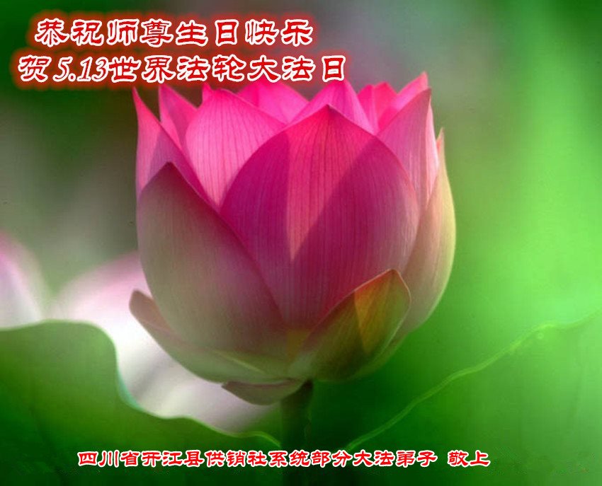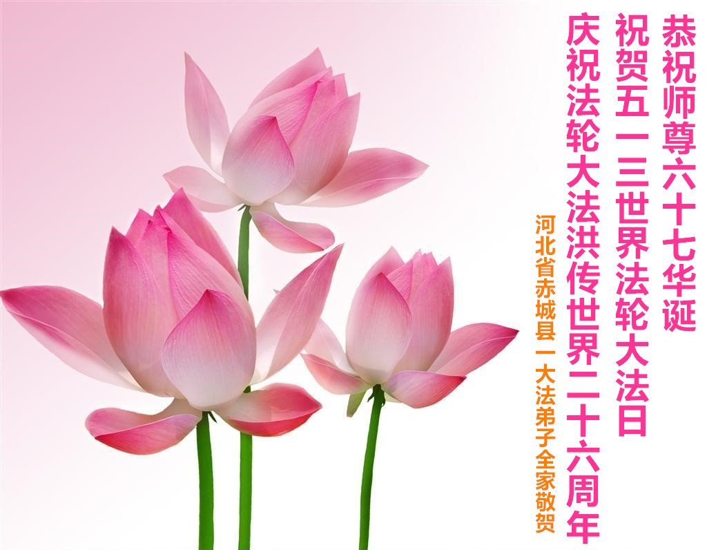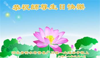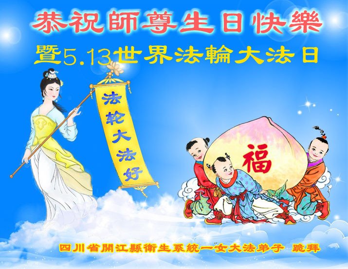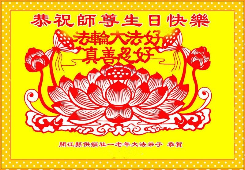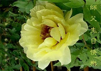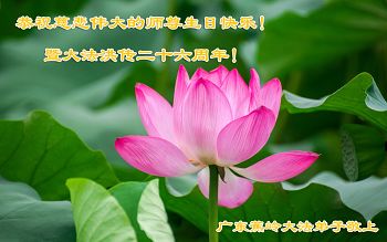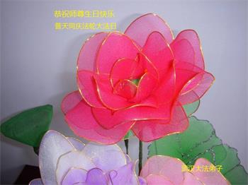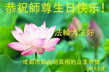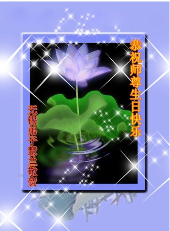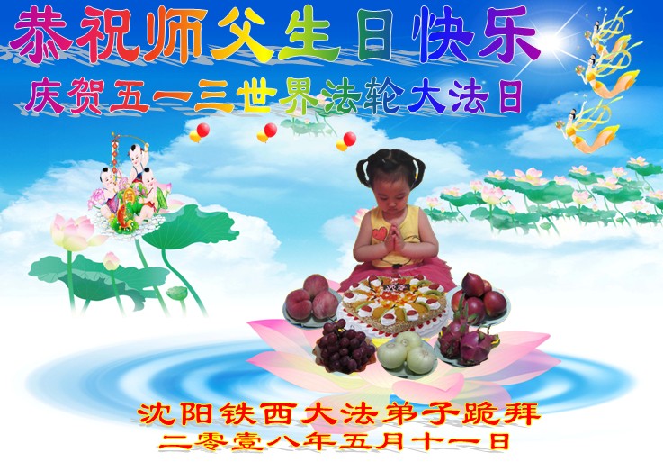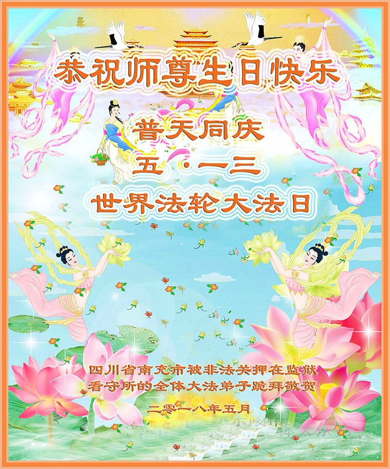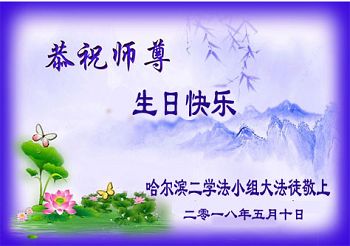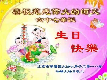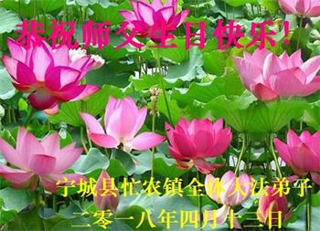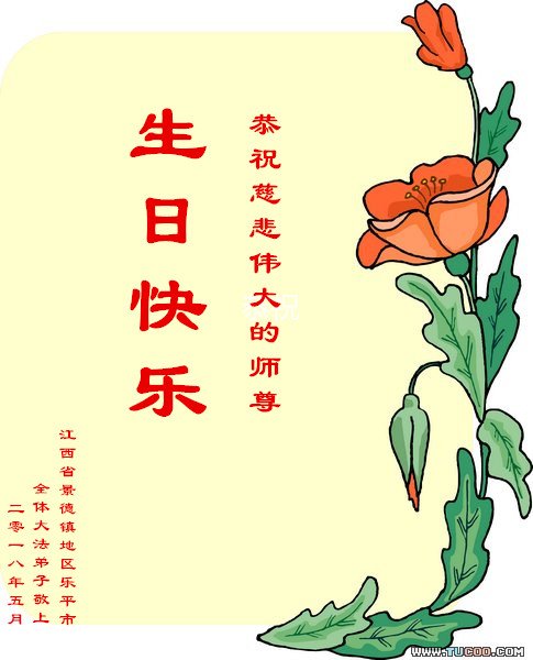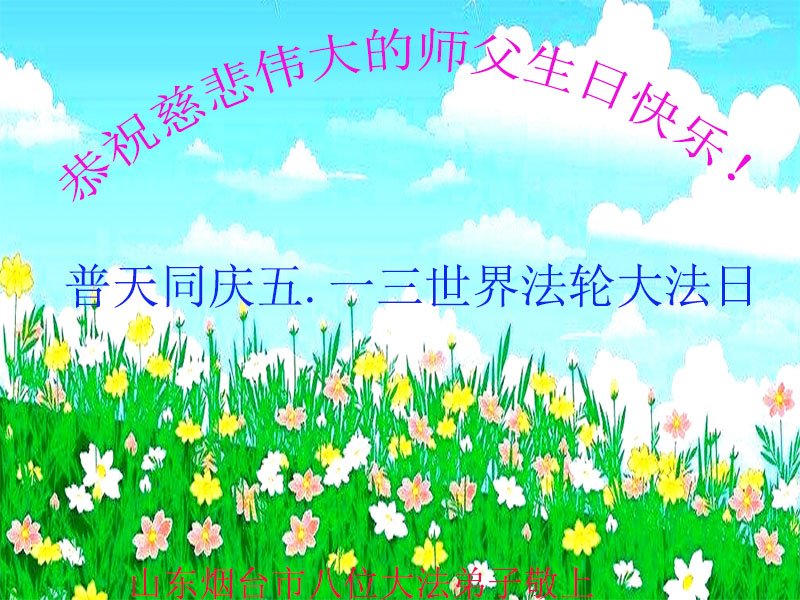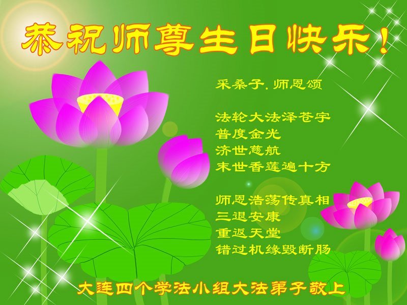 值此普天同庆的日子,弟子叩拜师尊!祝师尊生日快乐!我们一定按师父的要求,做好三件事,勇猛精進,修炼如初。紧随师行,多多救人。完成我们的神圣誓约,以报师恩。