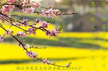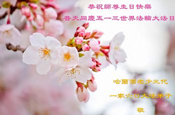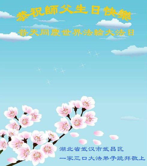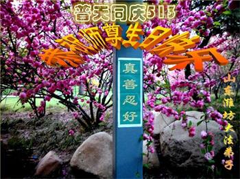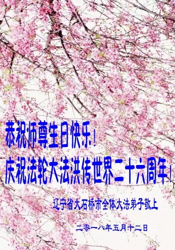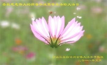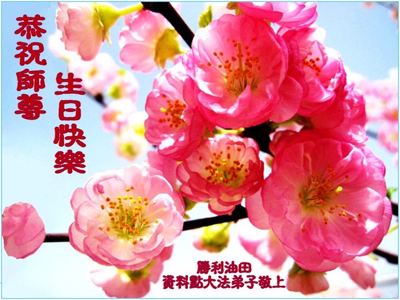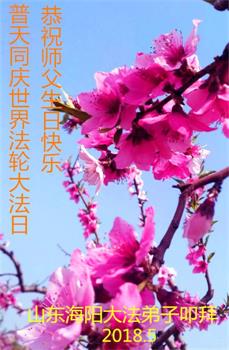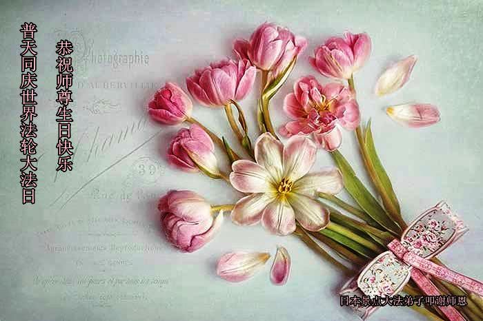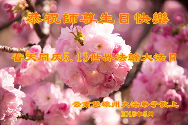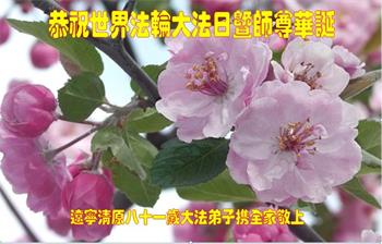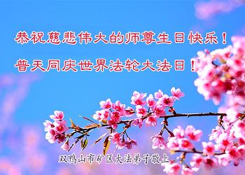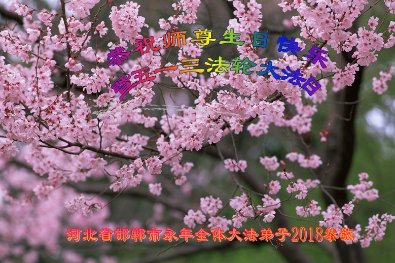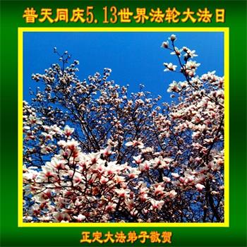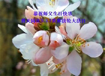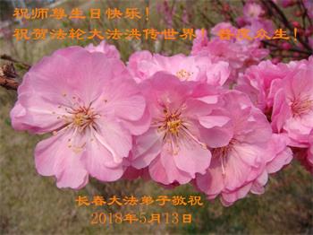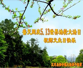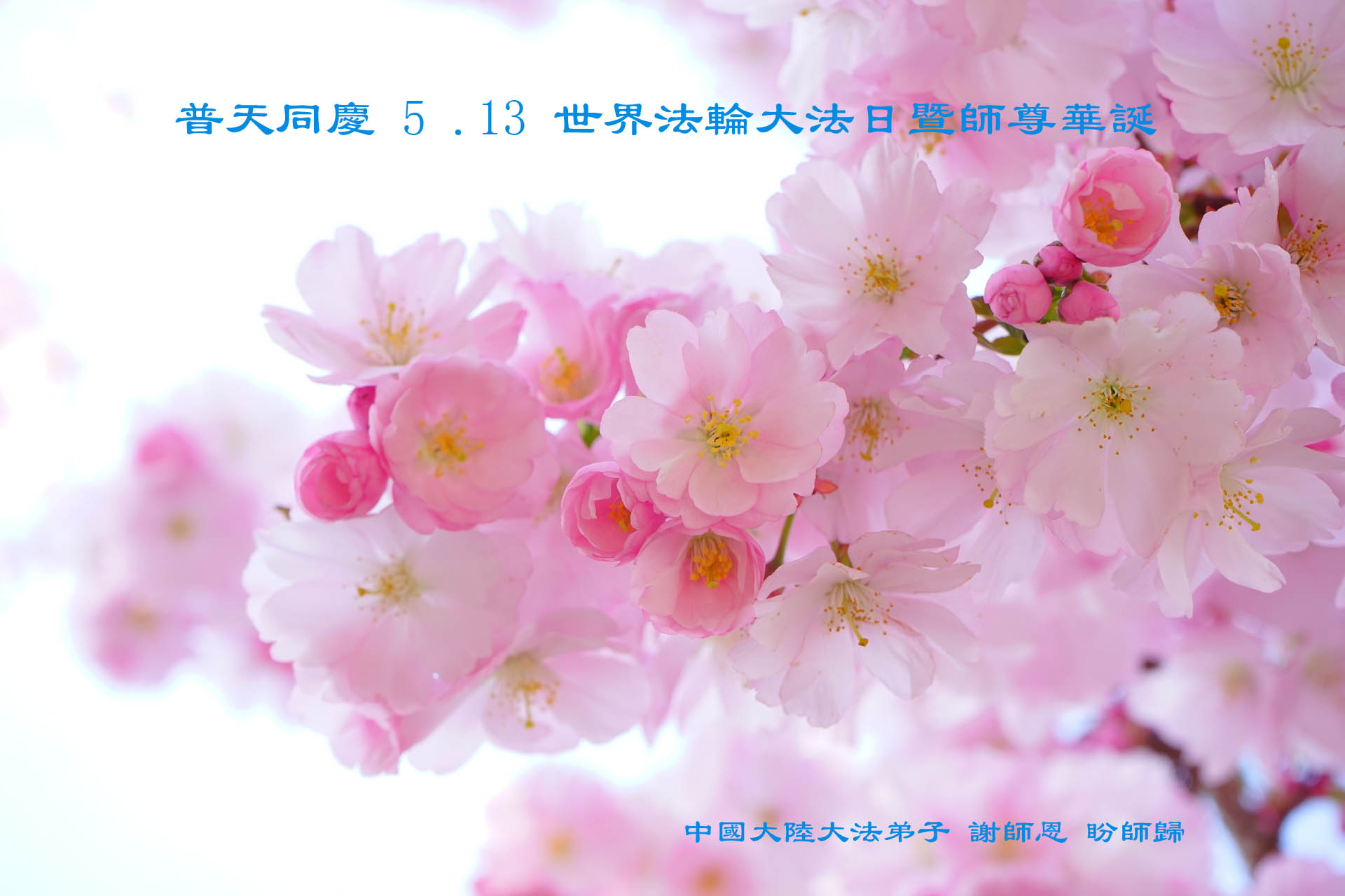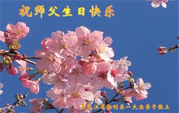 在这繁花似锦、绿草如茵的五月迎来了世界法轮大法日,恭祝慈悲伟大的师尊生日快乐!圣寿无疆!拜谢师尊洪恩浩荡救度末法末劫时的宇宙和众生。师父您好!师父辛苦了!冬去春来,樱吹雪中有弟子打坐的身影,我们愿把大法的美好吉祥、无边洪福带给有缘相遇的众生。大法在洪扬,人类有希望!