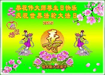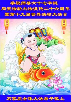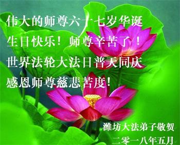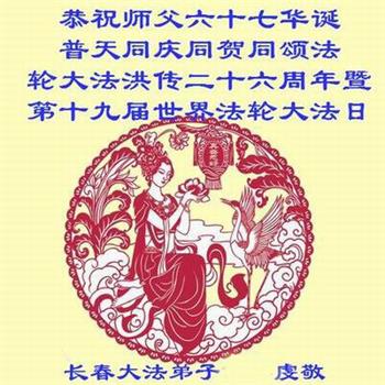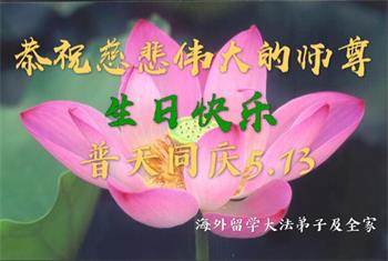在这个特殊的日子里,天上人间,普天同庆,海外的法轮大法弟子给师父发来贺词,恭祝师父六十七岁华诞,恭贺师父传法二十六周年,同贺世界法轮大法日!