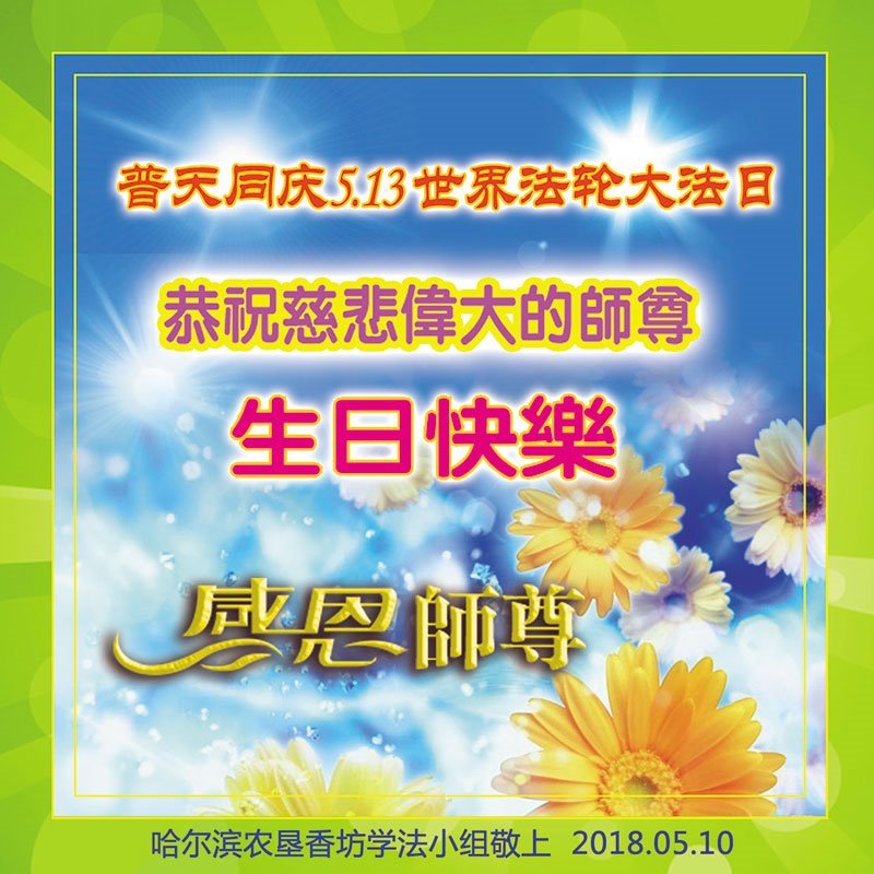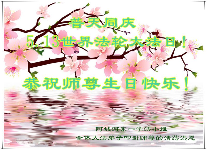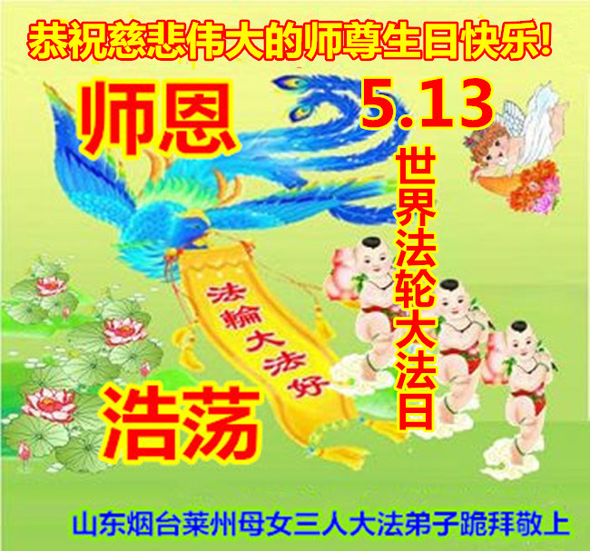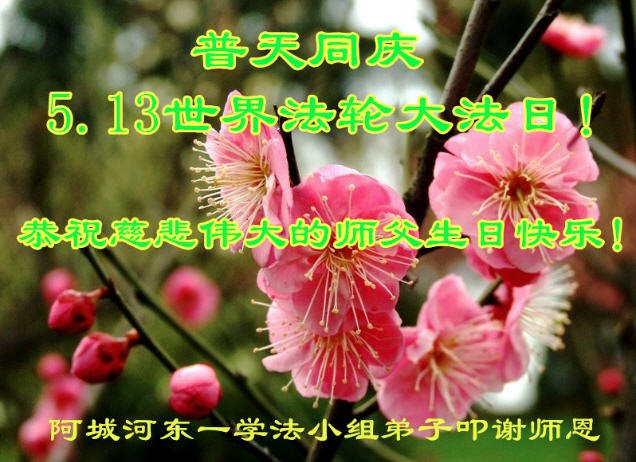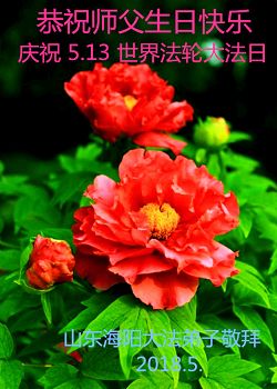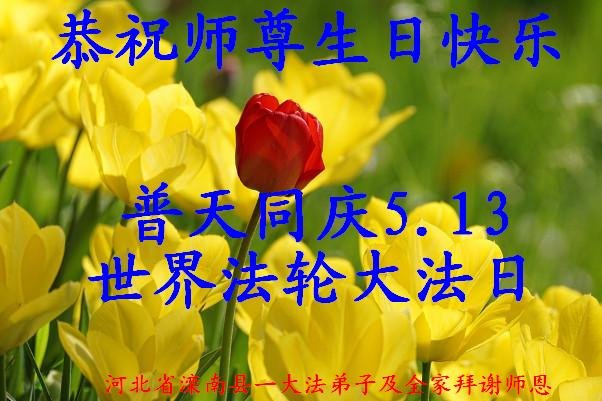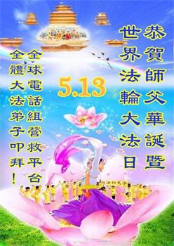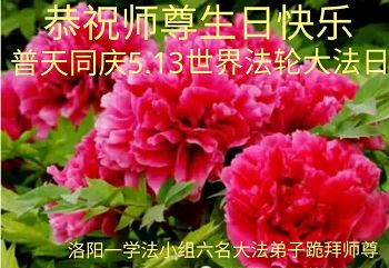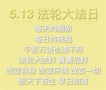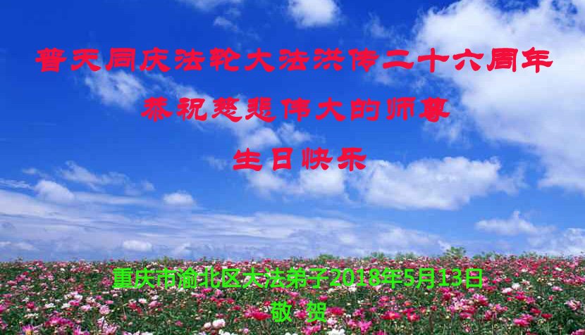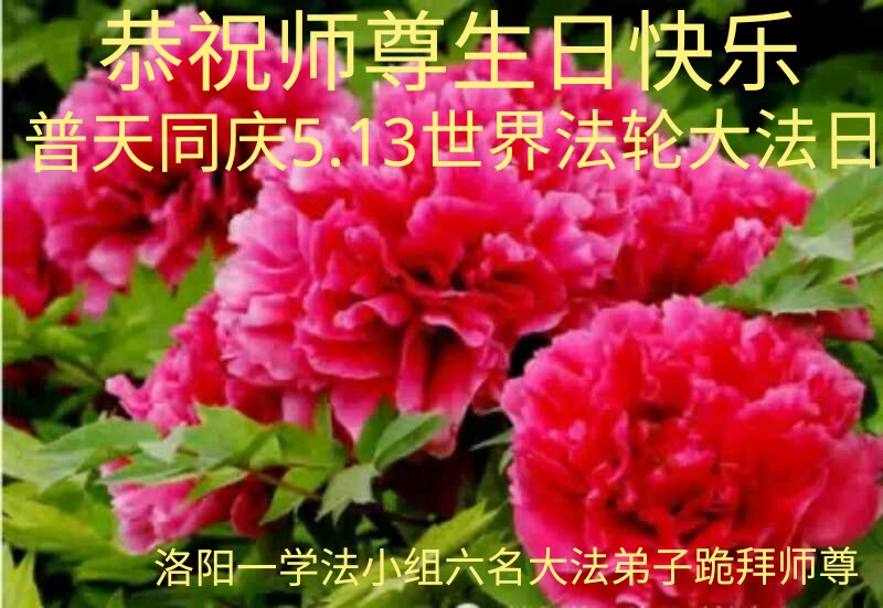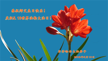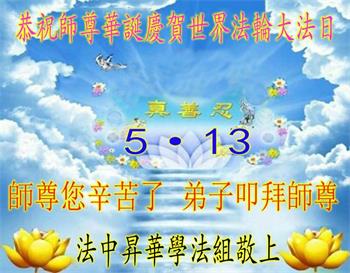 5月13日-----世界法轮大法日!在这普天同庆的美好时刻,全球电话组DHT平台紧急接力组全体大法弟子恭祝慈悲伟大的师尊:生日快乐!